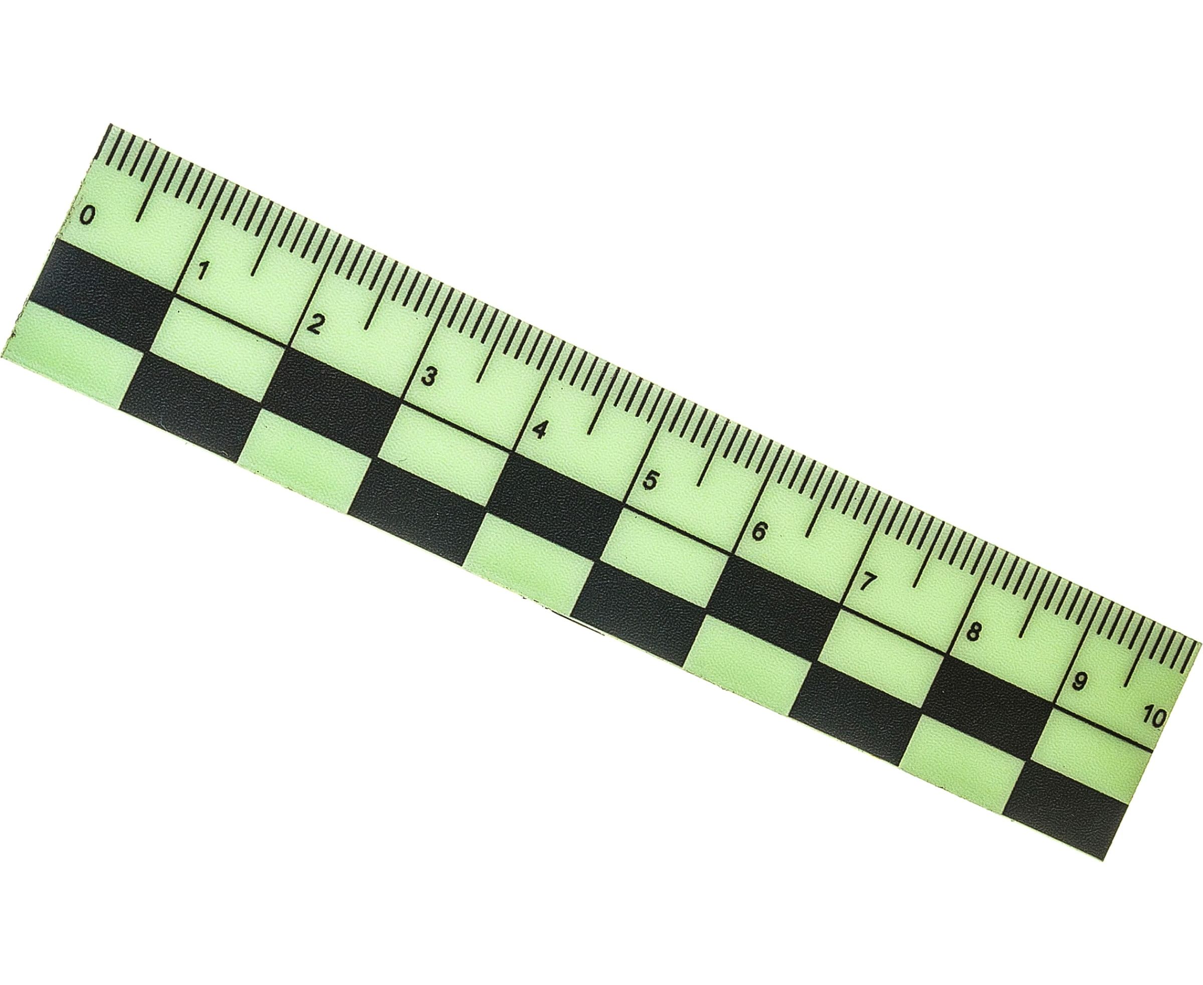 Масштабная линейка используется в криминалистике для фиксации размерных величин отдельно взятых, как правило, небольших по объему и площади объектов. Полезным свойством магнитной масштабной линейки является гибкость. Она может повторять изгибы поверхности, что актуально при неровных поверхностях. Так же это свойство магнитной линейки удобно при переносе, она может сворачиваться в рулончик и быть компактной.
