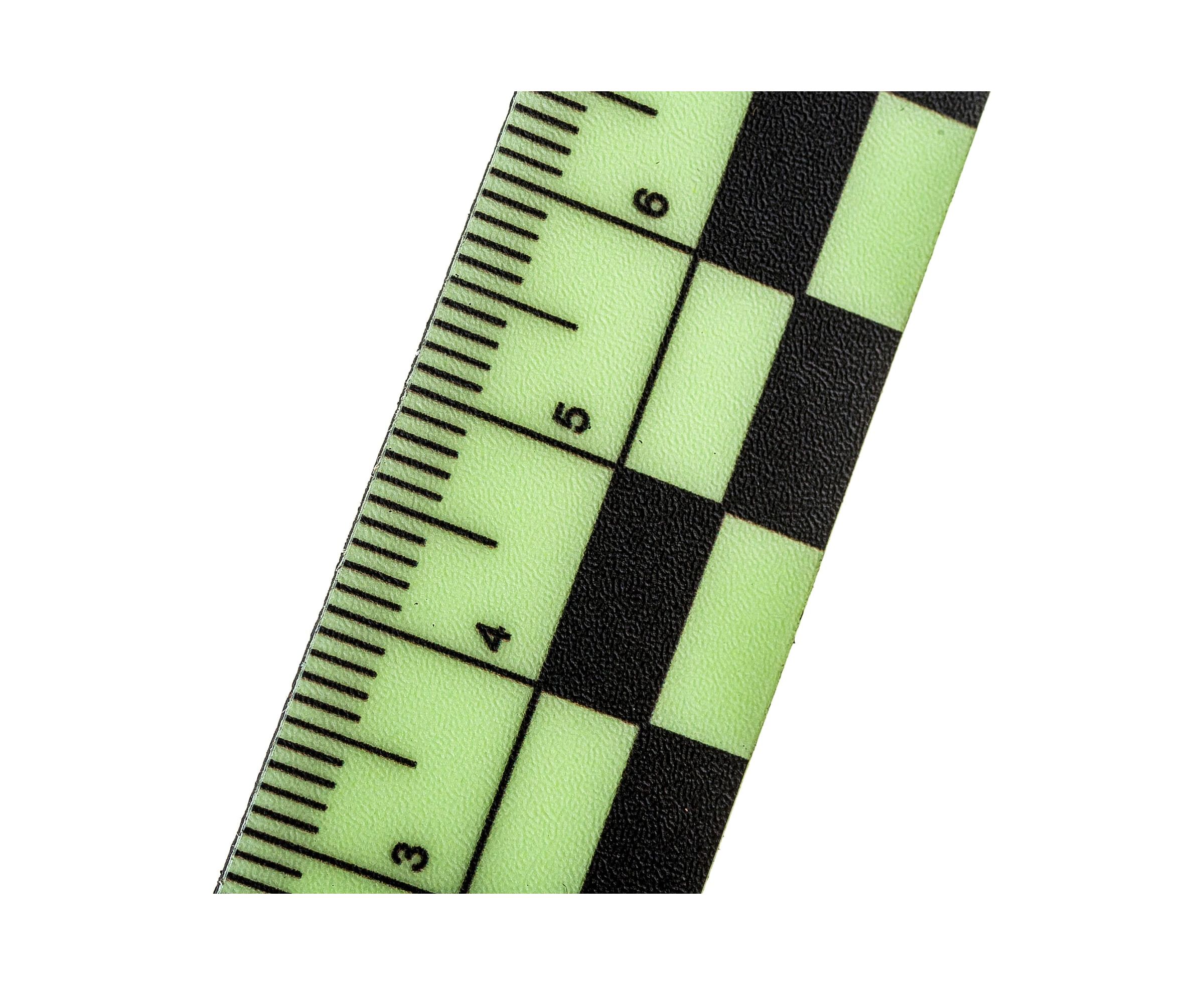 Линейка длиной разработана для проведения экспертных действий при дорожно-транспортных происшествиях. Длина линейки позволяет закрепить её на металлической поверхности так, чтобы значительная часть линейки заходила на пластиковую поверхность (бампер, порог) и эксперт мог, без труда, проводить фотофиксацию.