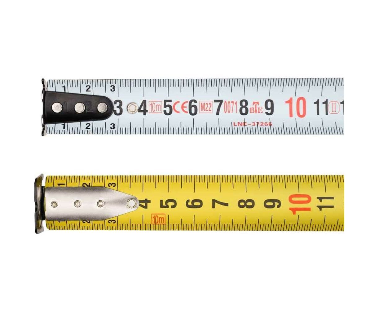 Основной материал корпуса - прочный пластик, который защищен от ударов слоем резины с усиленными вставками, расположенными в тех местах, которые наиболее часто страдают при падениях. Полотно устойчиво к коррозии и изломам, а шкала рулетки не выцветает со временем.