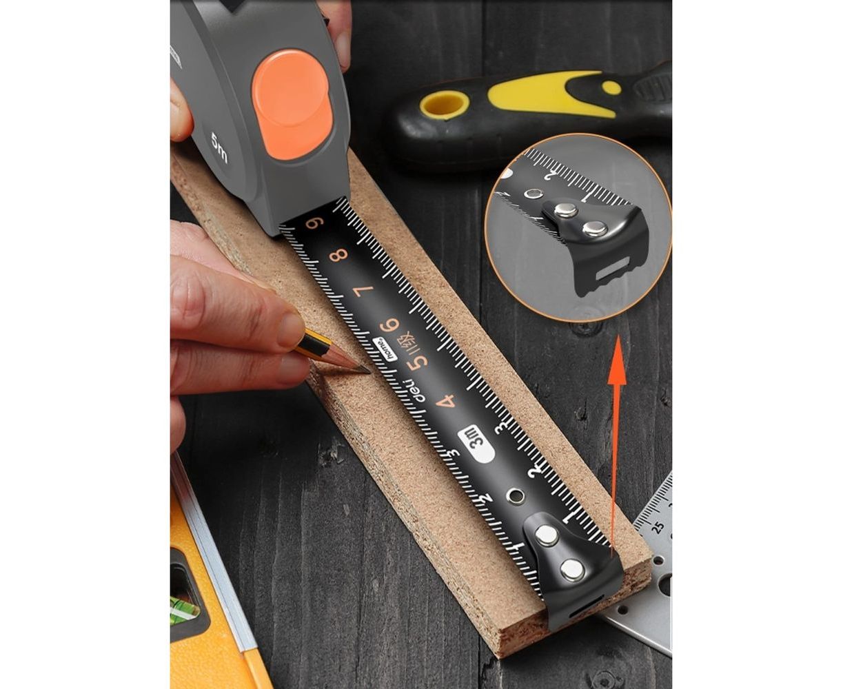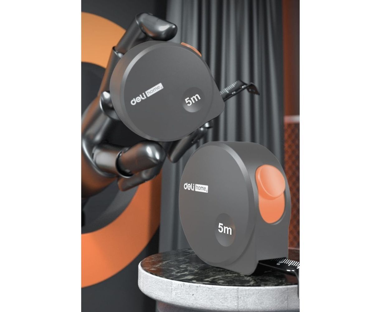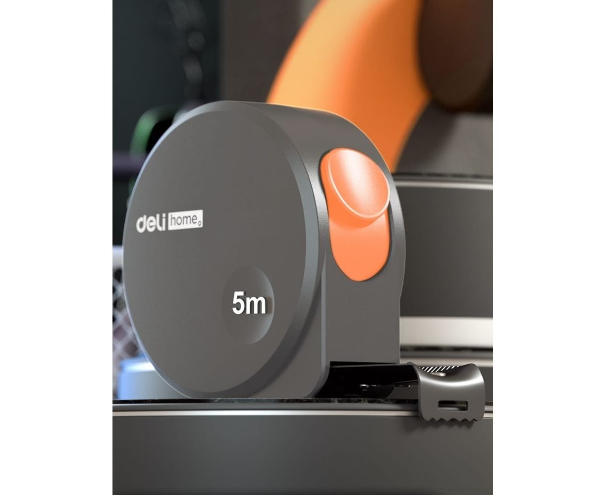 Рулетка DELI home series gray ht8519c 5мх19мм, эксклюзивный дизайн, корпус из софттач пластика, противоскользящая резиновая вставка, подарочная упаковка 112898
