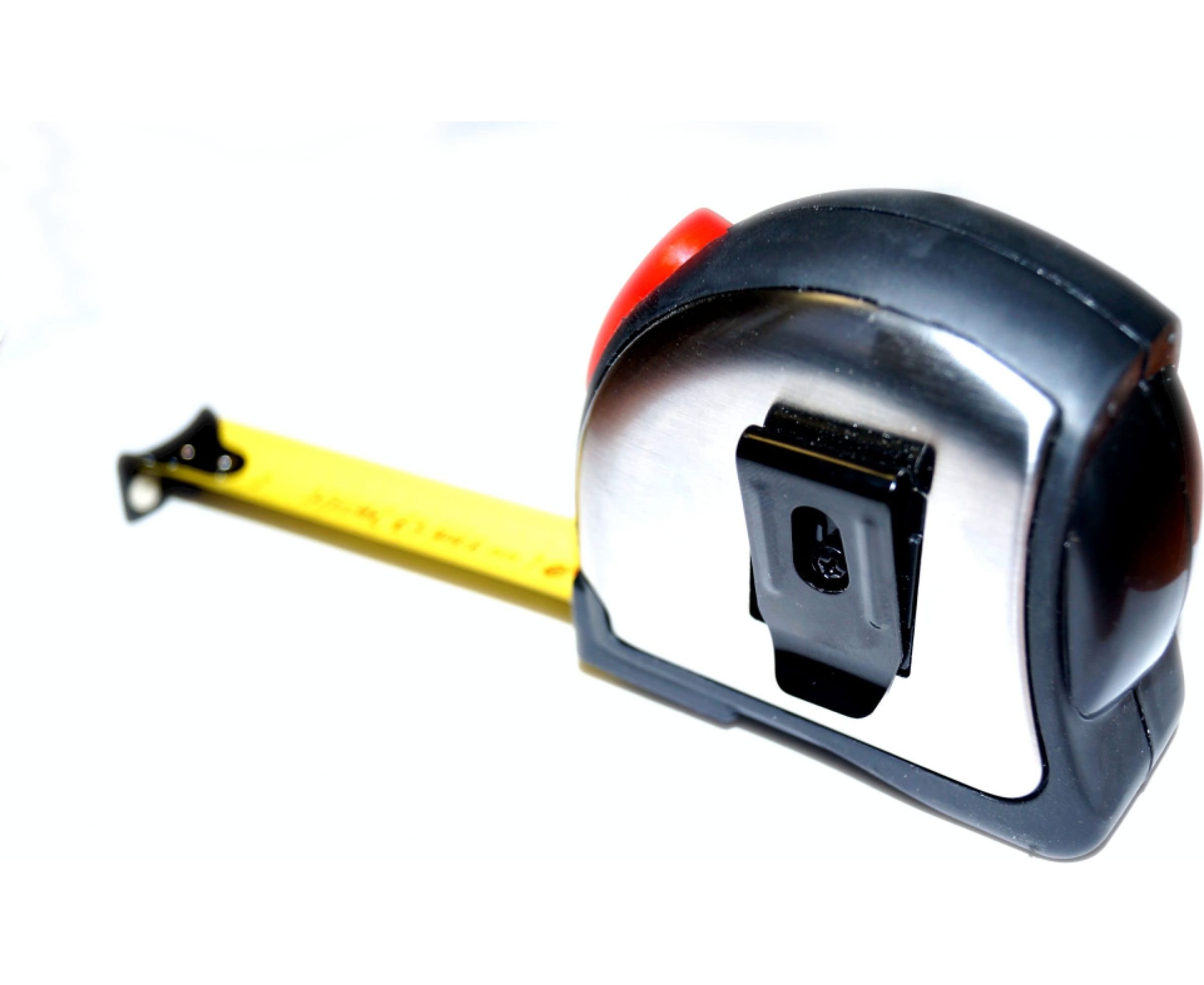 Рулетка IZELTAS прорезиненный корпус, хромированная, с поясным зажимом, 3м 0588150013