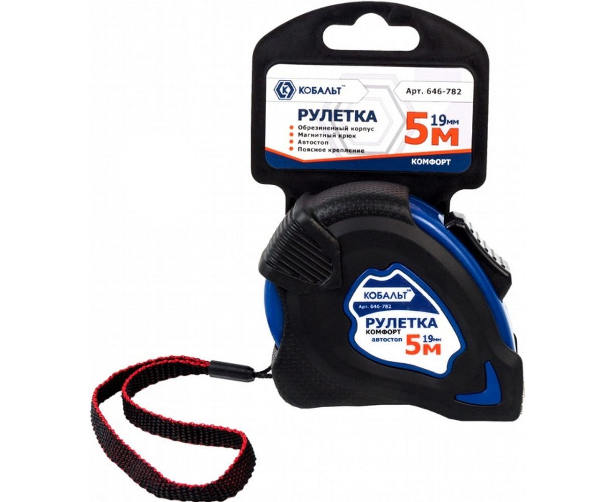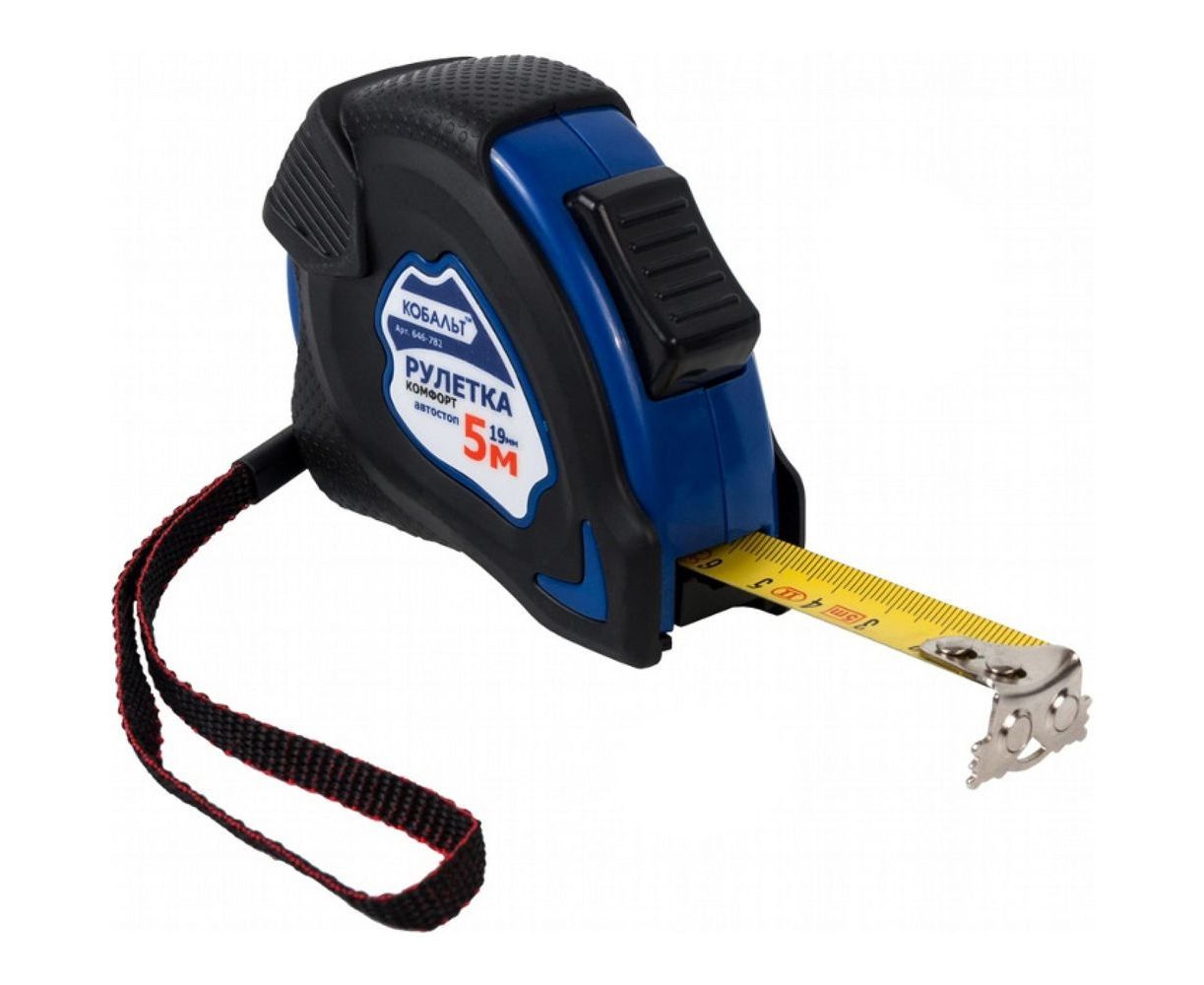 Рулетка Комфорт (5м x 19мм) обрезиненный корпус КОБАЛЬТ 646-782