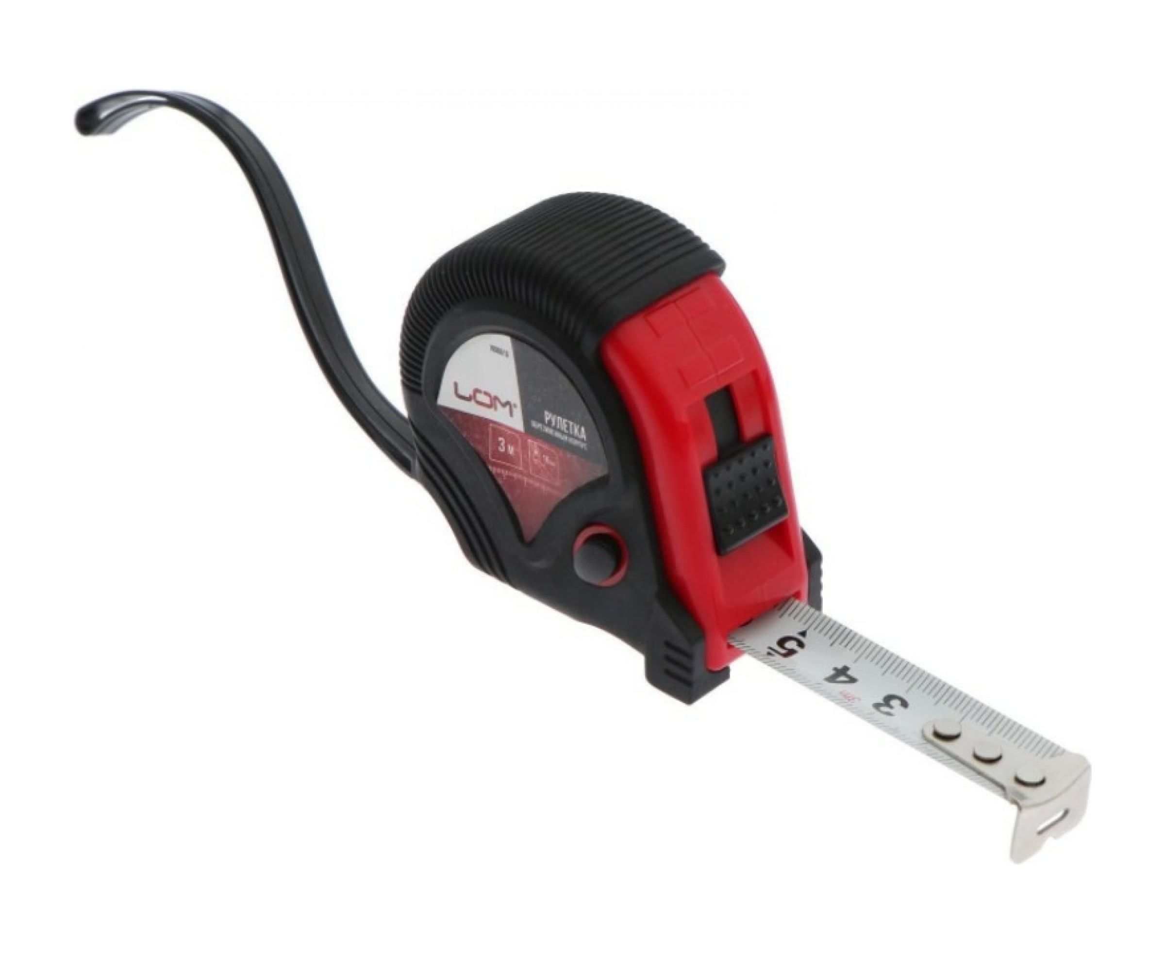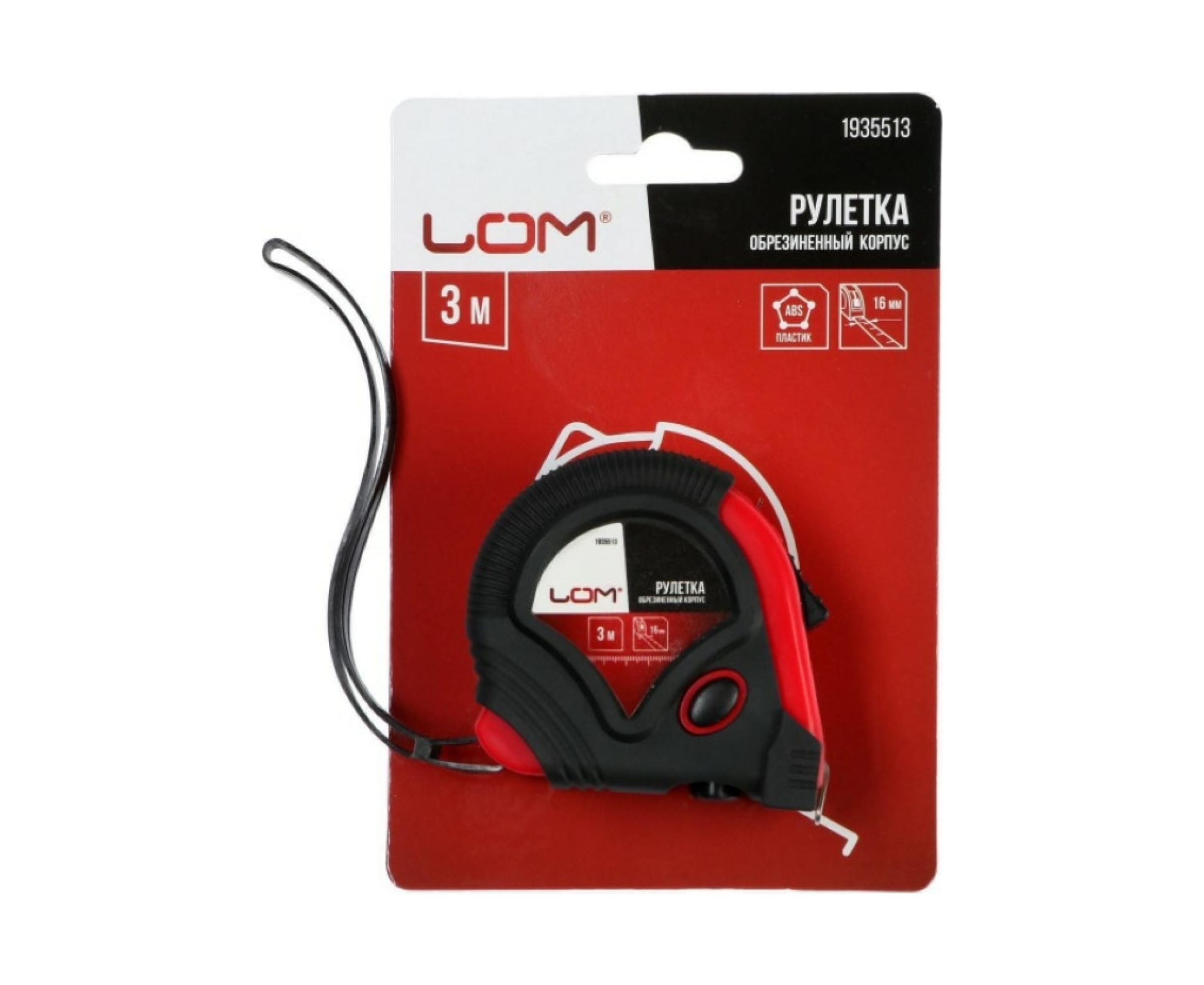 Рулетка LOM обрезиненный корпус, 3 фиксатора, 3 м х 16 мм 1935513