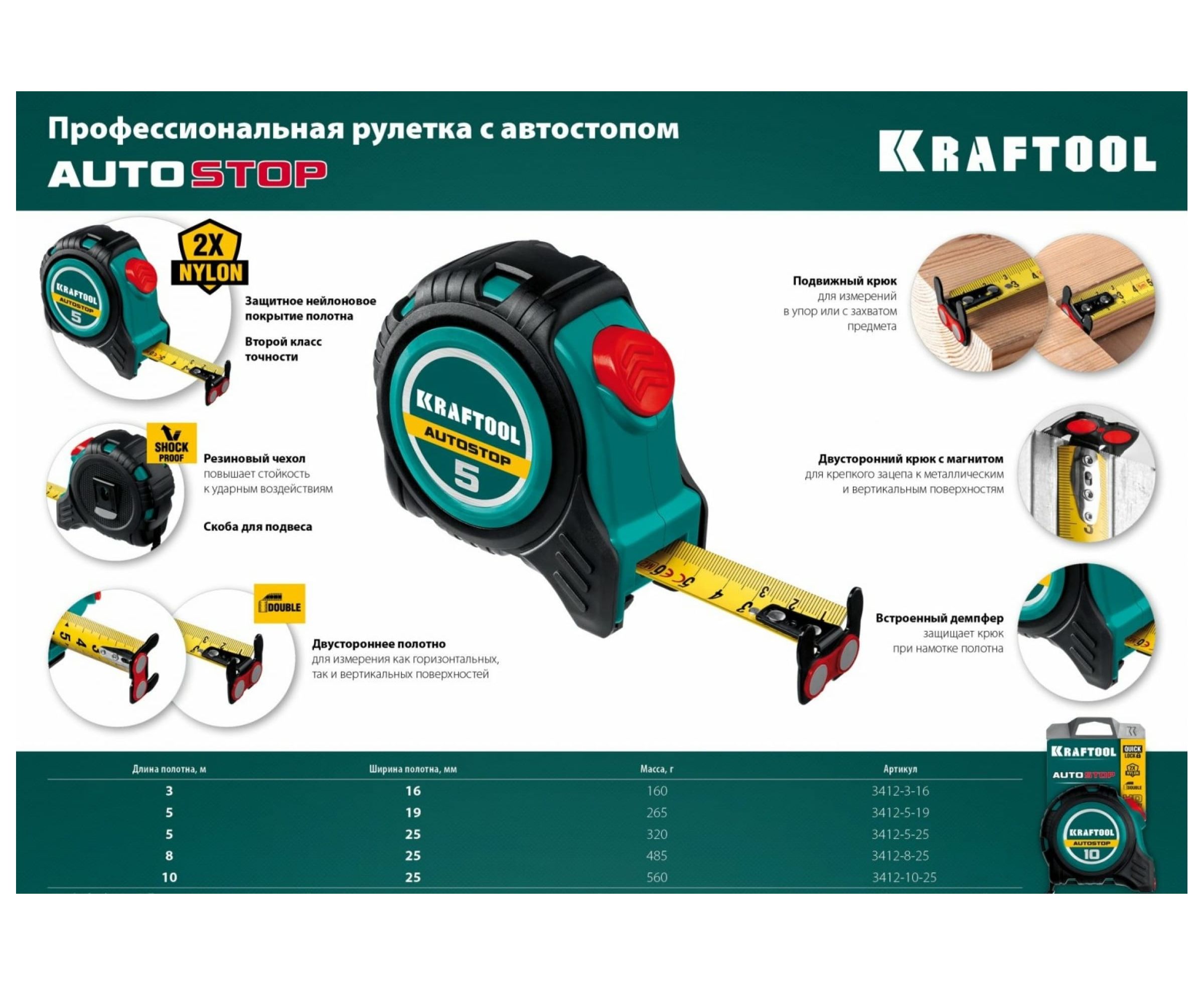 Рулетка с автостопом KRAFTOOL AutoStop 8 м 3412-8-25