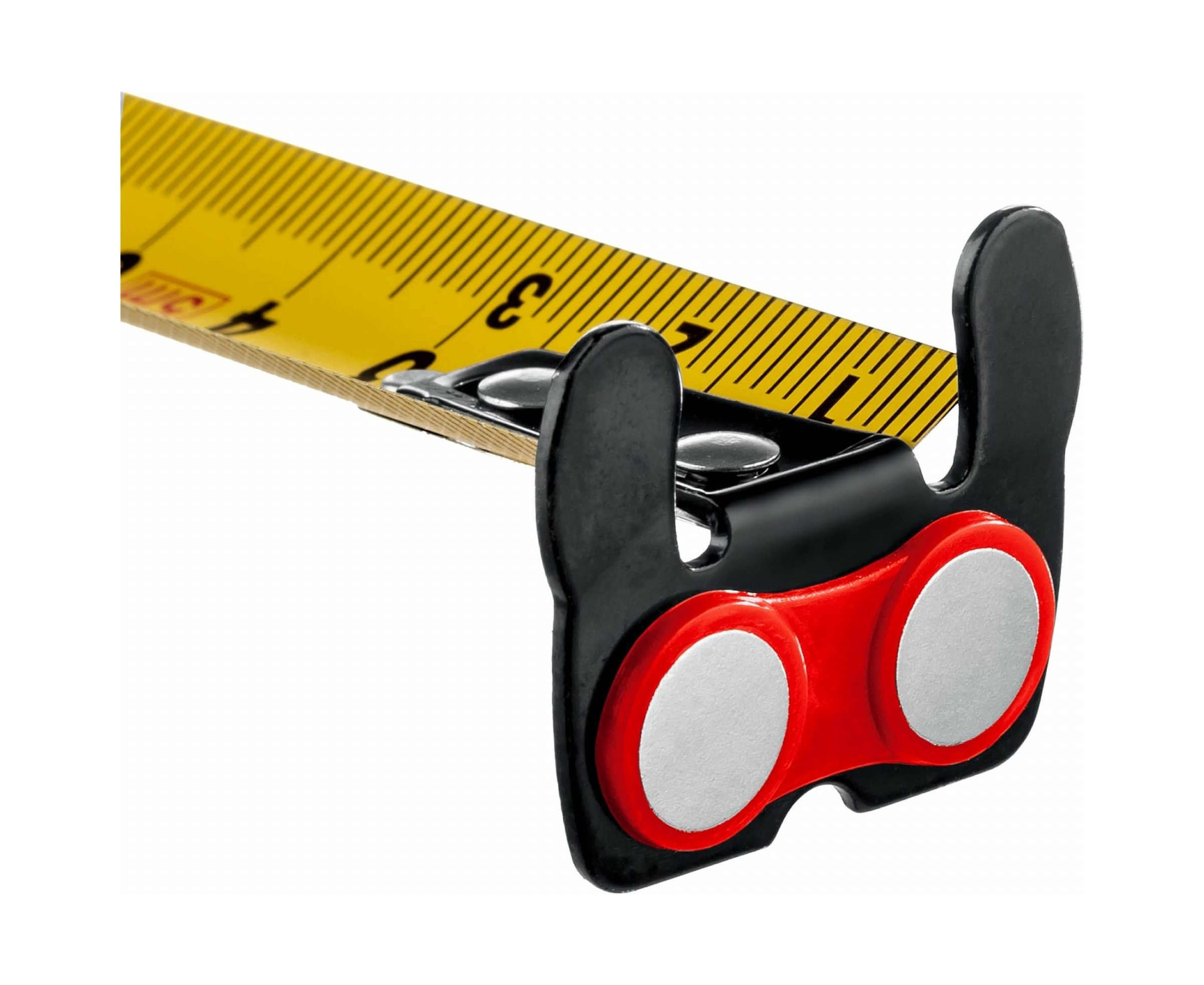Рельефный корпус не скользит в руке, а эргономичная форма рулетки удобна для работы.