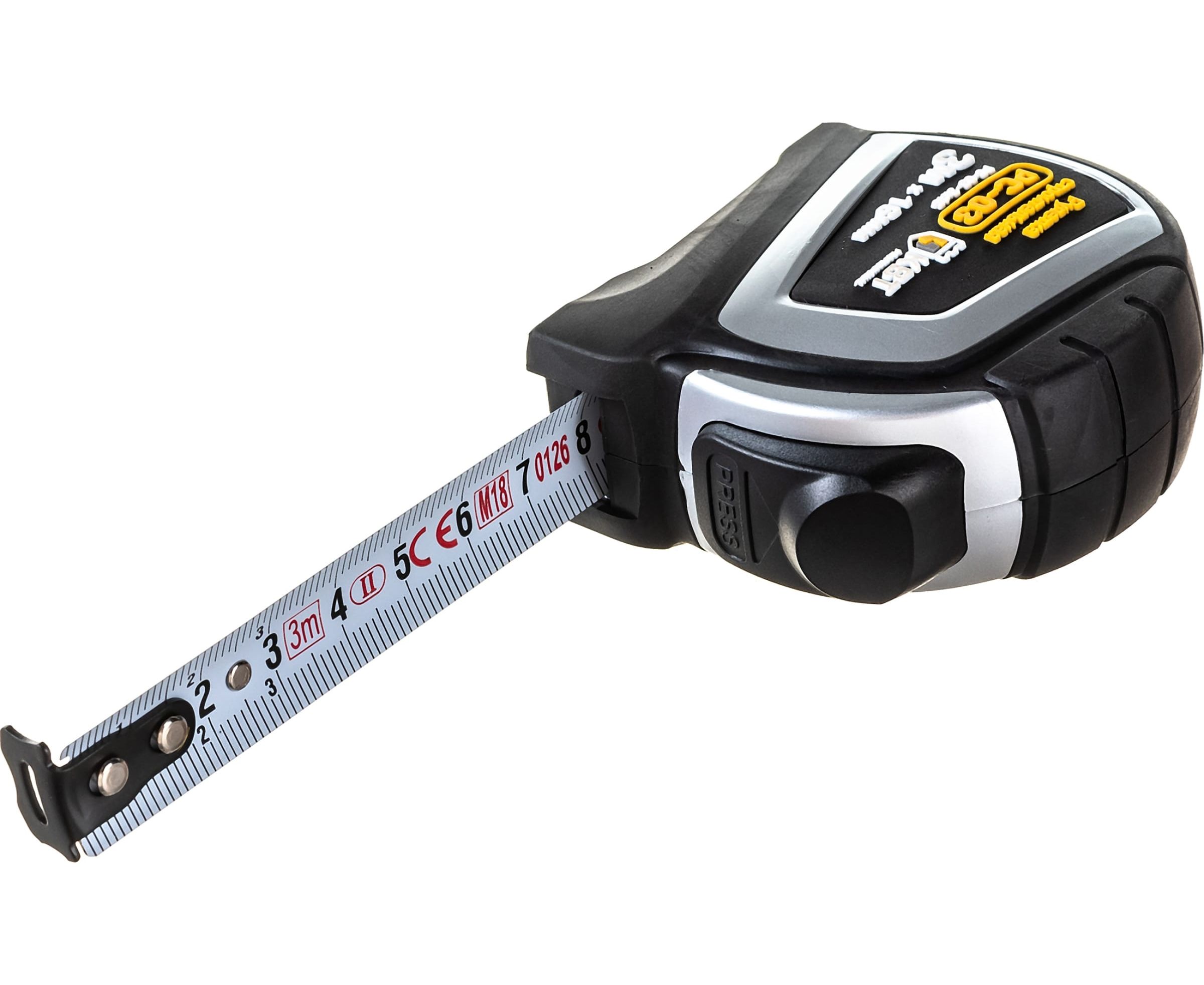 Рулетка строительная РС-03-3х16 КВТ 78645 отличается практичностью и компактными размерами. Пригодится при выполнении строительных, отделочных, ремонтных работ для измерения расстояний, объектов. Ударопрочный корпус оснащен вставками из термопластрезины, защищающими инструмент от случайного падения. Стальная лента имеет нейлоновое покрытие, обеспечивающее износоустойчивость изделия. Конструкцией предусмотрено наличие автоматической фиксации ленты, кнопки разблокировки ленты, механизма автоматического сматывания, подвижного зацепа с отверстием на конце ленты. Во время работы рулетка удобно ложится в руку.