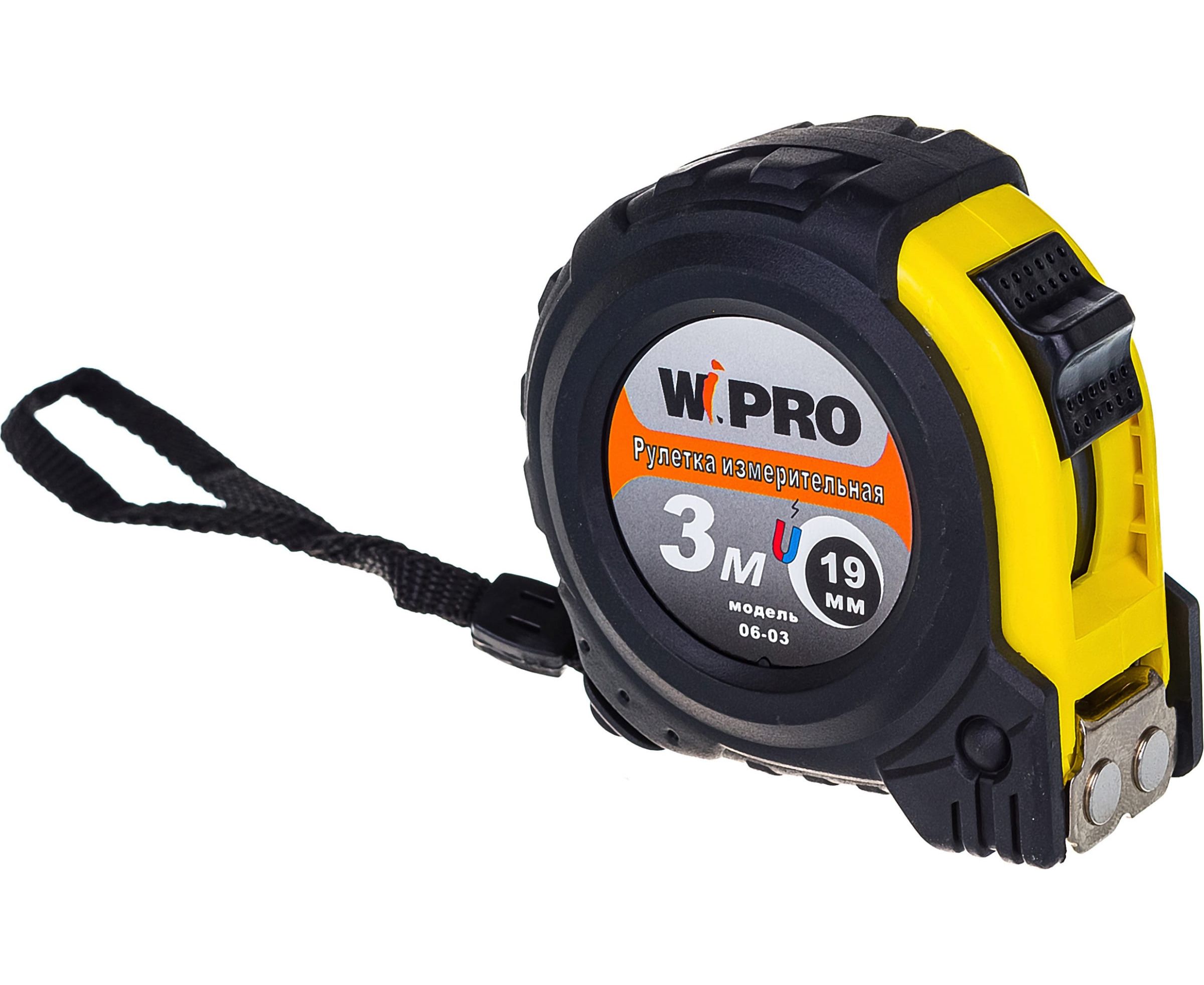Рулетка WIPRO 3 м*19 мм, АБС-пластик + магнитный упор + резина, толщина 0,115 мм 06-03