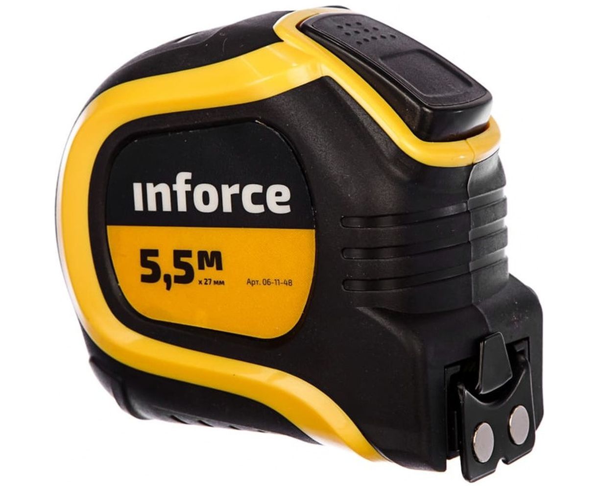 Измерительная рулетка с нейлоновым ярким покрытием и магнитным зацепом 5.5x27мм Inforce 06-11-48 - компактное и простое в использовании приспособление для измерения объектов на строительной площадке.