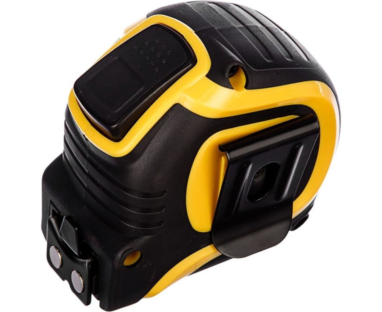 Ребристая поверхность корпуса не дает руке соскальзывать во время измерительных работ. Специальный фиксатор позволяет зафиксировать ленту в нужном положении.