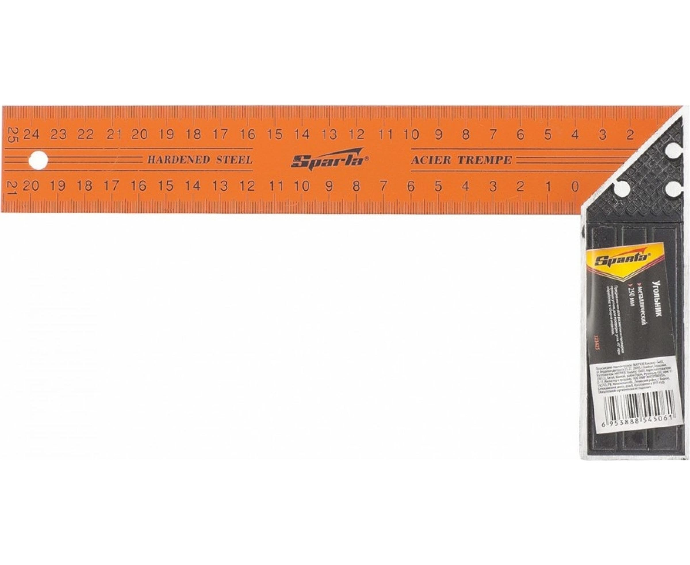 Металлический угольник 250 мм SPARTA 323425 имеет высокую точность. Применяется для разметки и проверки углов на соответствие 90° и 45°. Используется в слесарных, столярных работах, при сборке изделий. Шкала нанесена с двух сторон, что облегчает рабочий процесс.