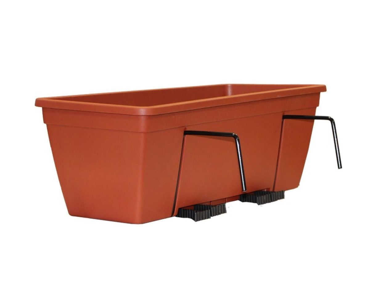 Пластиковый ящик для перил ПРОТЭКТ терракот ЯП-50 Т используется для выращивания цветов на балконе с шириной перил не более 8 см..