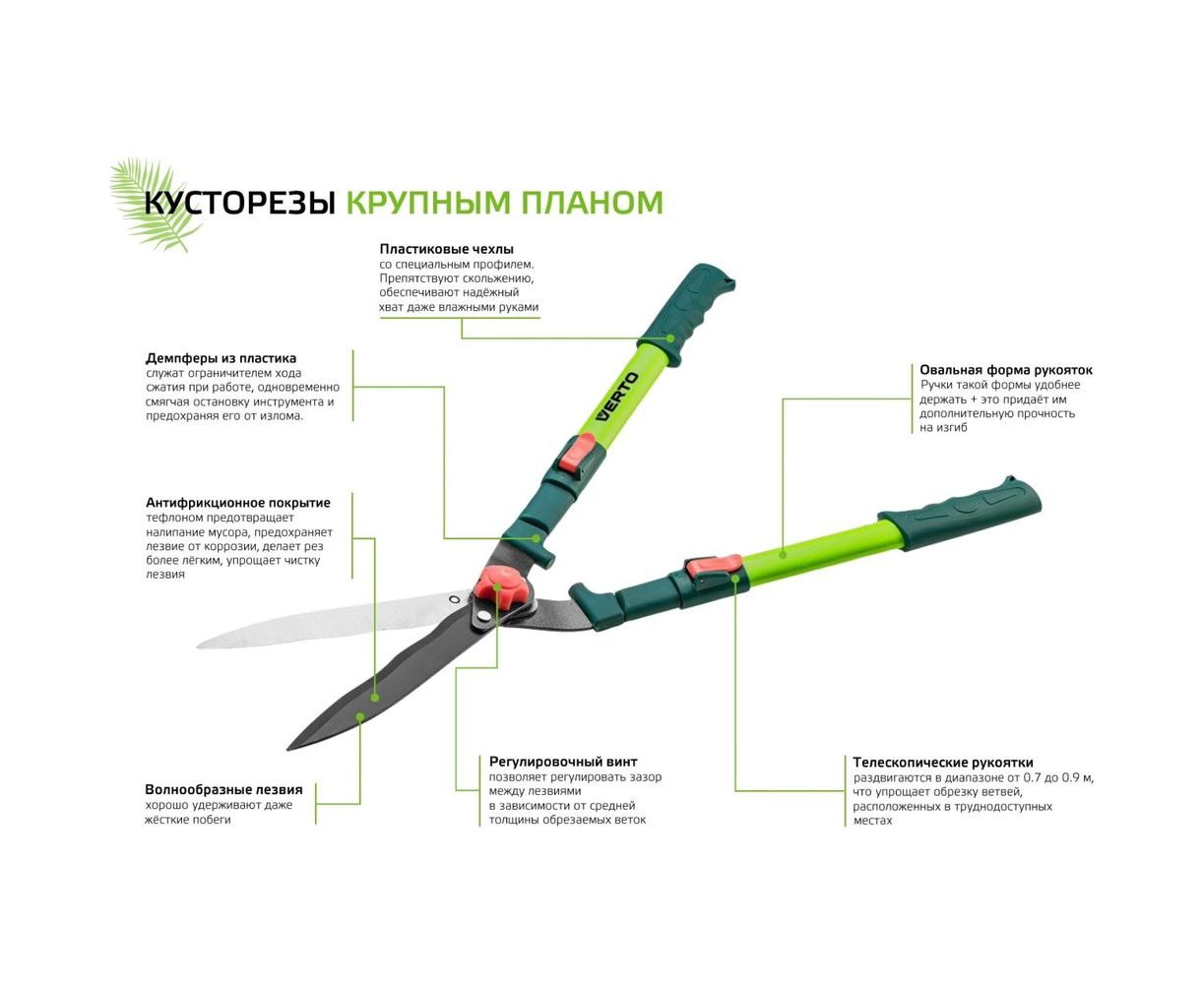 - Телескопические рукоятки облегчают обрезку в труднодоступных местах