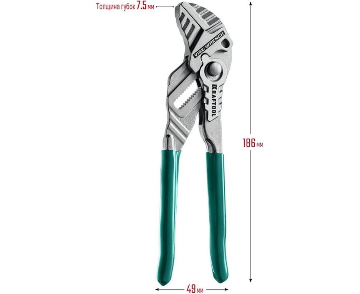 Переставные клещи KRAFTOOL 180мм, гаечный ключ 22063