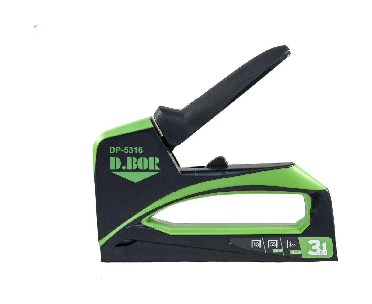 - Ручной степлер D.BOR Plastic Maxi DP 5316 П 53, П 13 6-16 мм, Т 8-300 16 мм DP-5316 имеет эргономичный и простой дизайн устройства