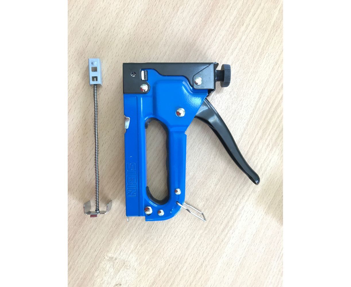 Стальной степлер тип 53 (4-14мм) СИБИН С-53 31535 имеет устойчивую конструкцию к высоким нагрузкам. Инструмент оснащен системой регулировки силы удара для крепления обивки, ткани, холста к поверхностям из пластика, дерева и ДВП. Прочный корпус изготовлен из качественной стали, которая защищает механизм от повреждения. В приспособление встроен крюк, с помощью него можно зафиксировать рукоять при транспортировке.