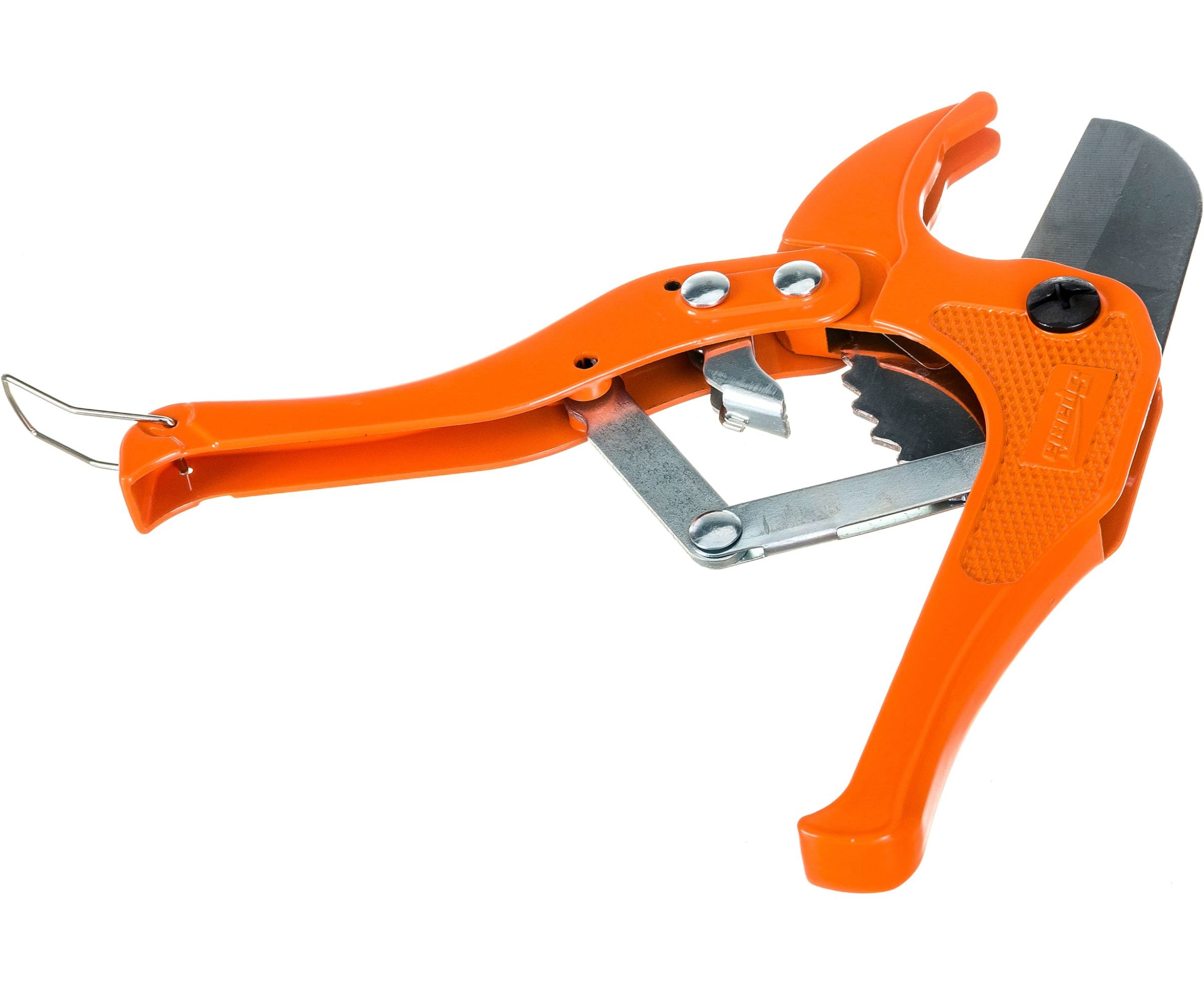 Ножницы для резки изделий из пластика, 180мм, диаметр до 42мм Sparta 78400 оснащены фиксатором, который позволяет безопасно переносить инструмент.