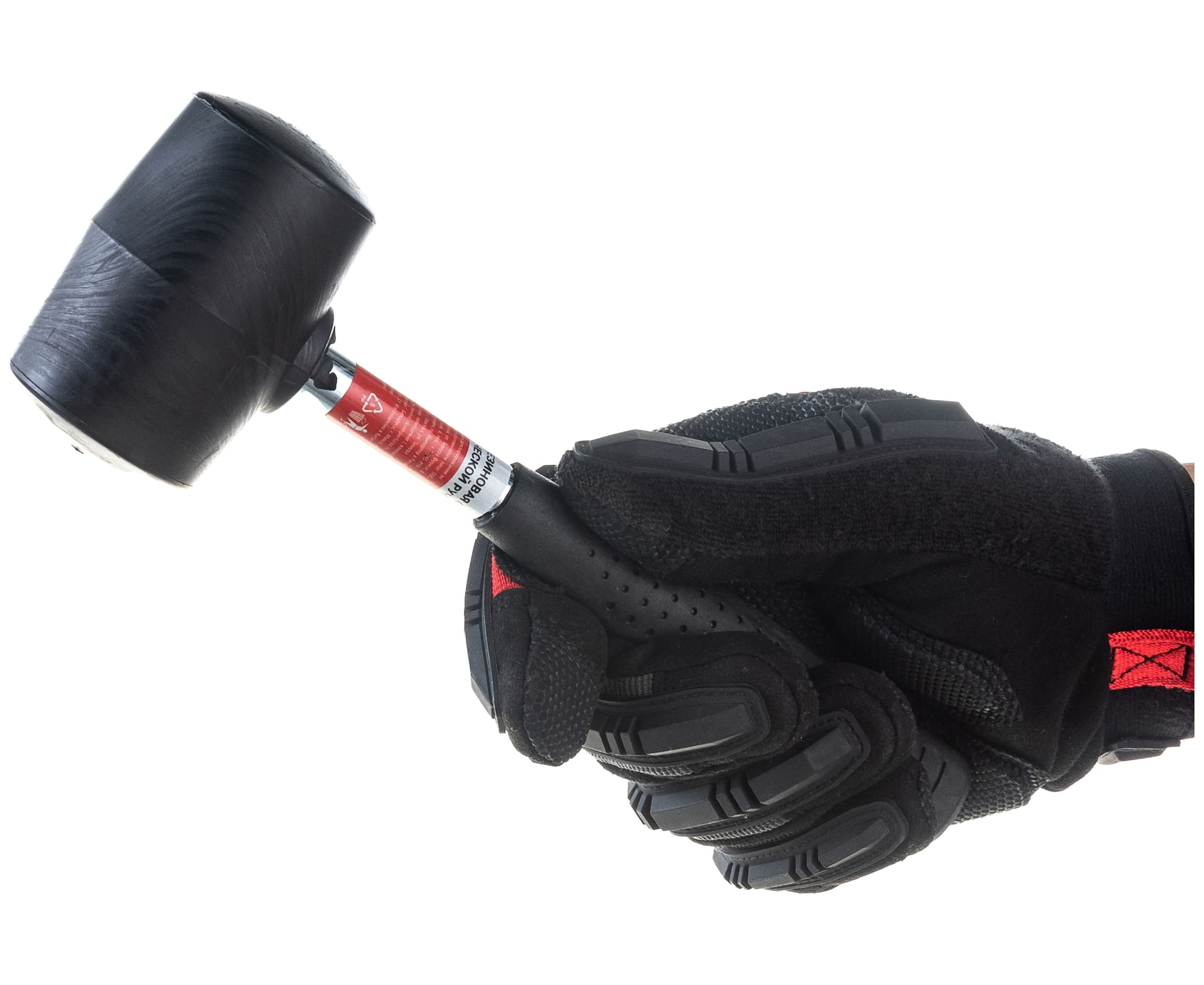 Прочная стальная рукоять выдерживает большие нагрузки. Имеется нескользящая оплетка из резины для лучшего удержания киянки.