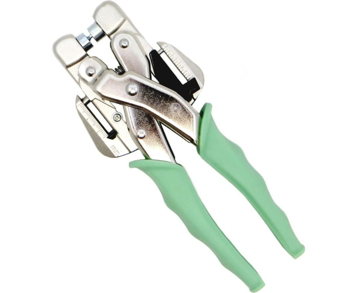 Инструмент выполненный из металла с удобными прорезиненными ручками приятного мятного цвета и предназначен для крепления люверсов на различные материалы, а также пробивания круглых отверстий диаметром 3 и 5 мм.