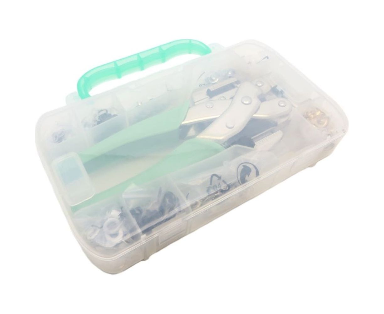 Набор для создания отверстий и установки люверсов подходит для рукоделия.