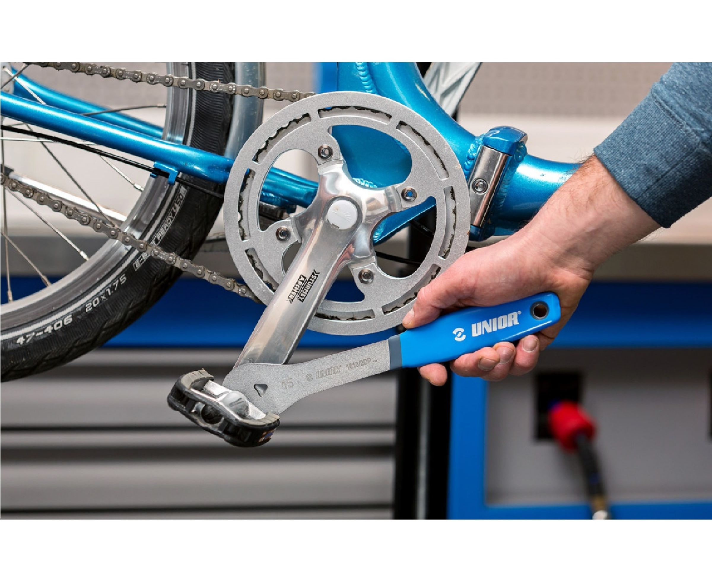 Педальный ключ Unior 15 628517 предназначен для ослабления и затяжки педалей велосипедов. Компактные размеры позволяют всегда брать инструмент с собой. Двухкомпонентная рукоятка удобна при работе. Данная модель изготовлена из прочной инструментальной стали и прошла термическую обработку. Это обеспечивает высокую стойкость к износу.