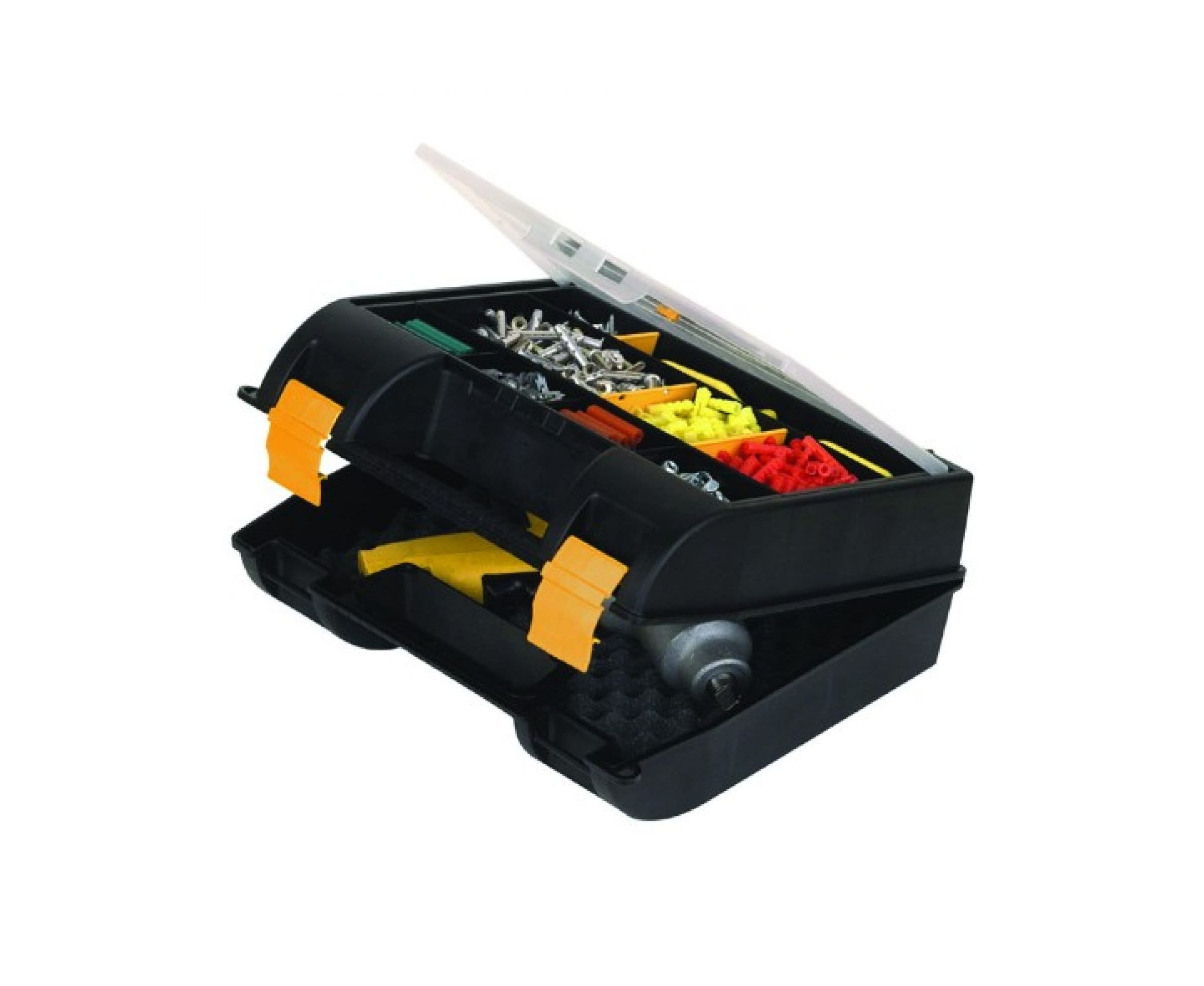 Ящик для электроинструмента Stanley 1-92-734 - это вместительный пластиковый контейнер со встроенным органайзером с прозрачной крышкой. Ящик наиболее часто используется для хранения и транспортировки электро-, пневмоинструмента и аксессуаров.