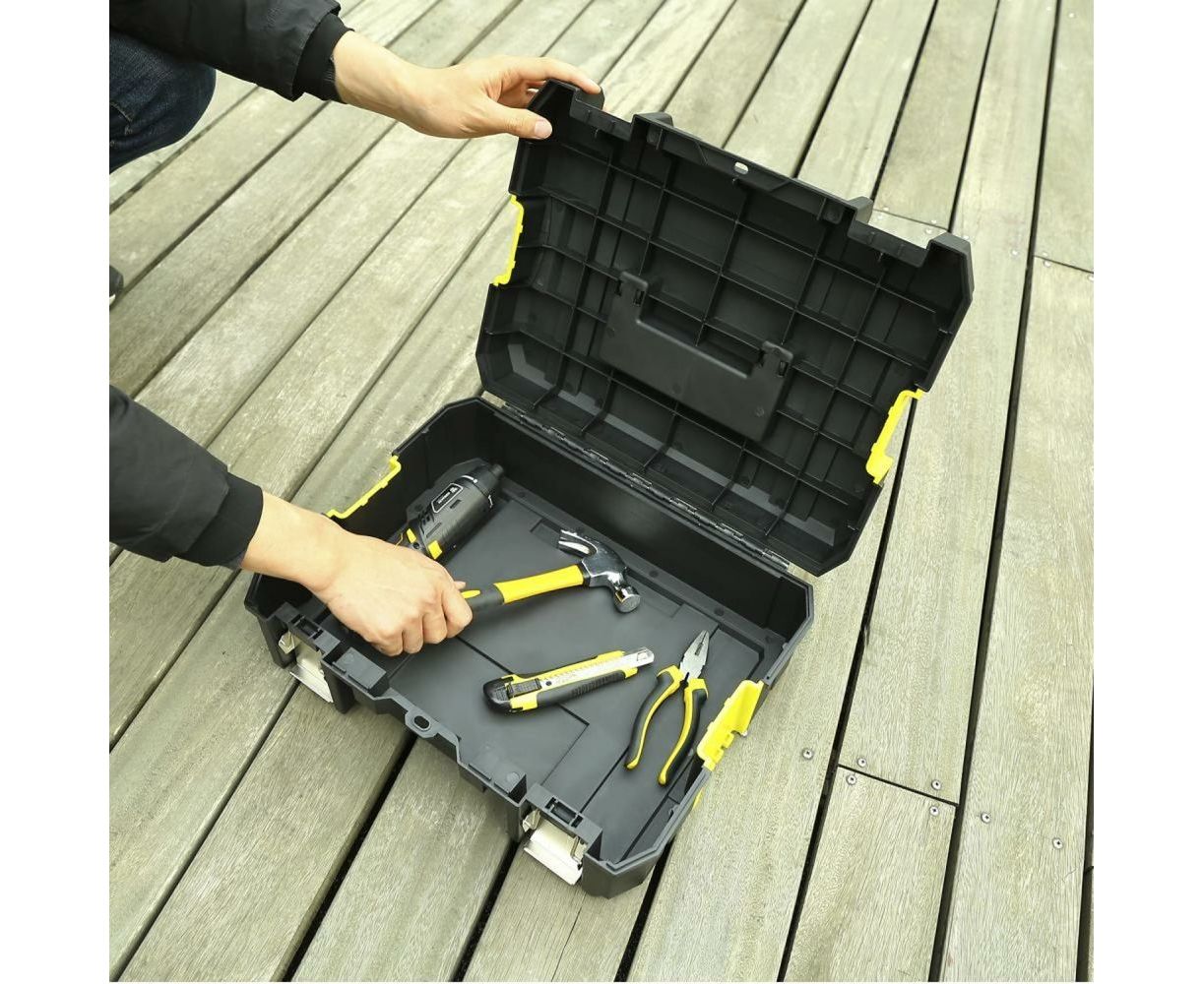 Ящик для инструментов DEKO DKTB37 представляет собой удобный вместительный контейнер для хранения инструментов и аксессуаров. Ящик выполнен из прочного пластика. Удобная рукоятка с выемками для пальцев снижает усталость ладони. Прочные металлические замки препятствуют внезапному открыванию ящика и утере инструмента.