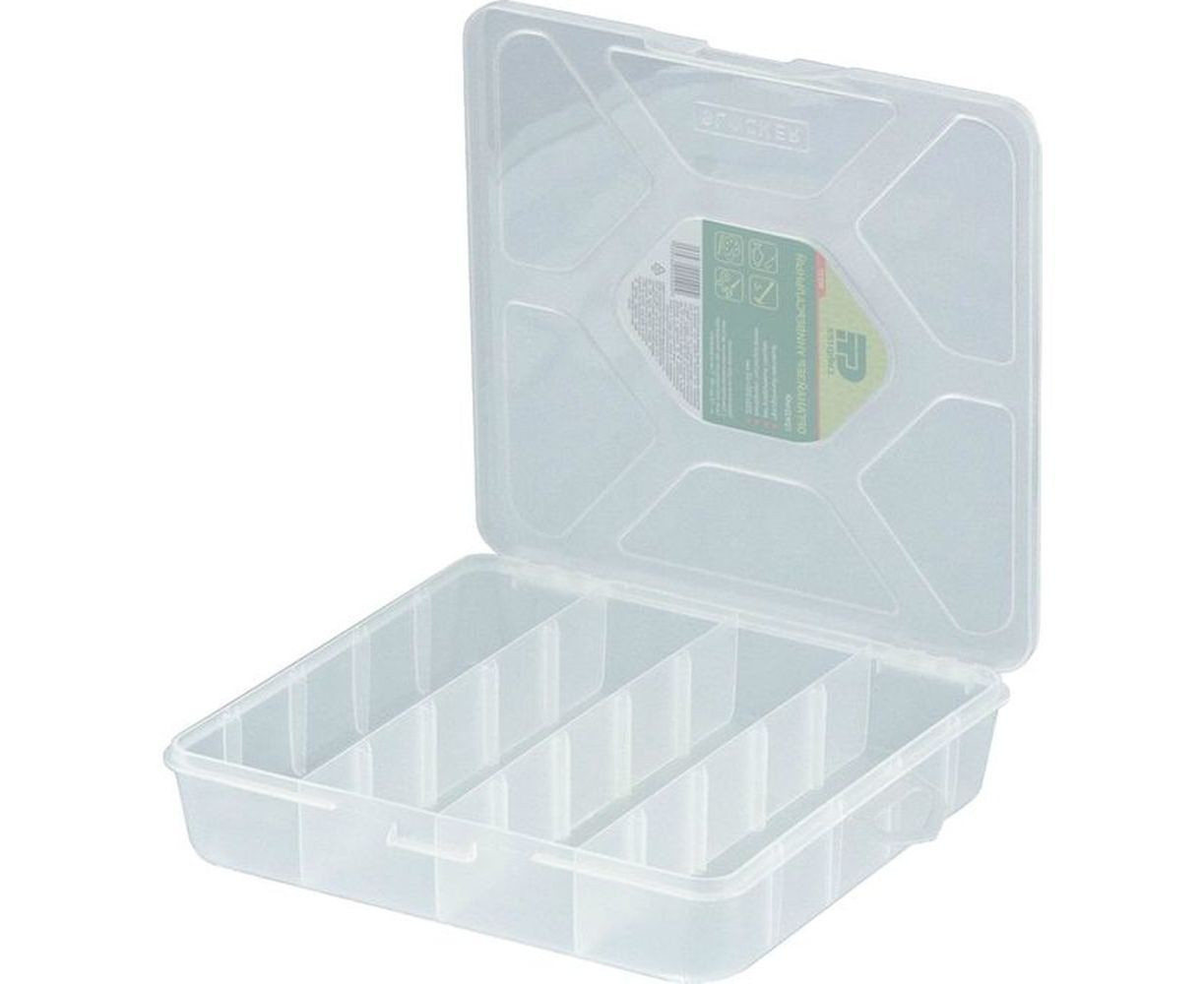 Универсальный средний органайзер 20 х 20 х 4,5 см СИБРТЕХ 90727 удобен для хранения и транспортировки небольших объемов крепежа, шайб, прокладок и иных мелочей.