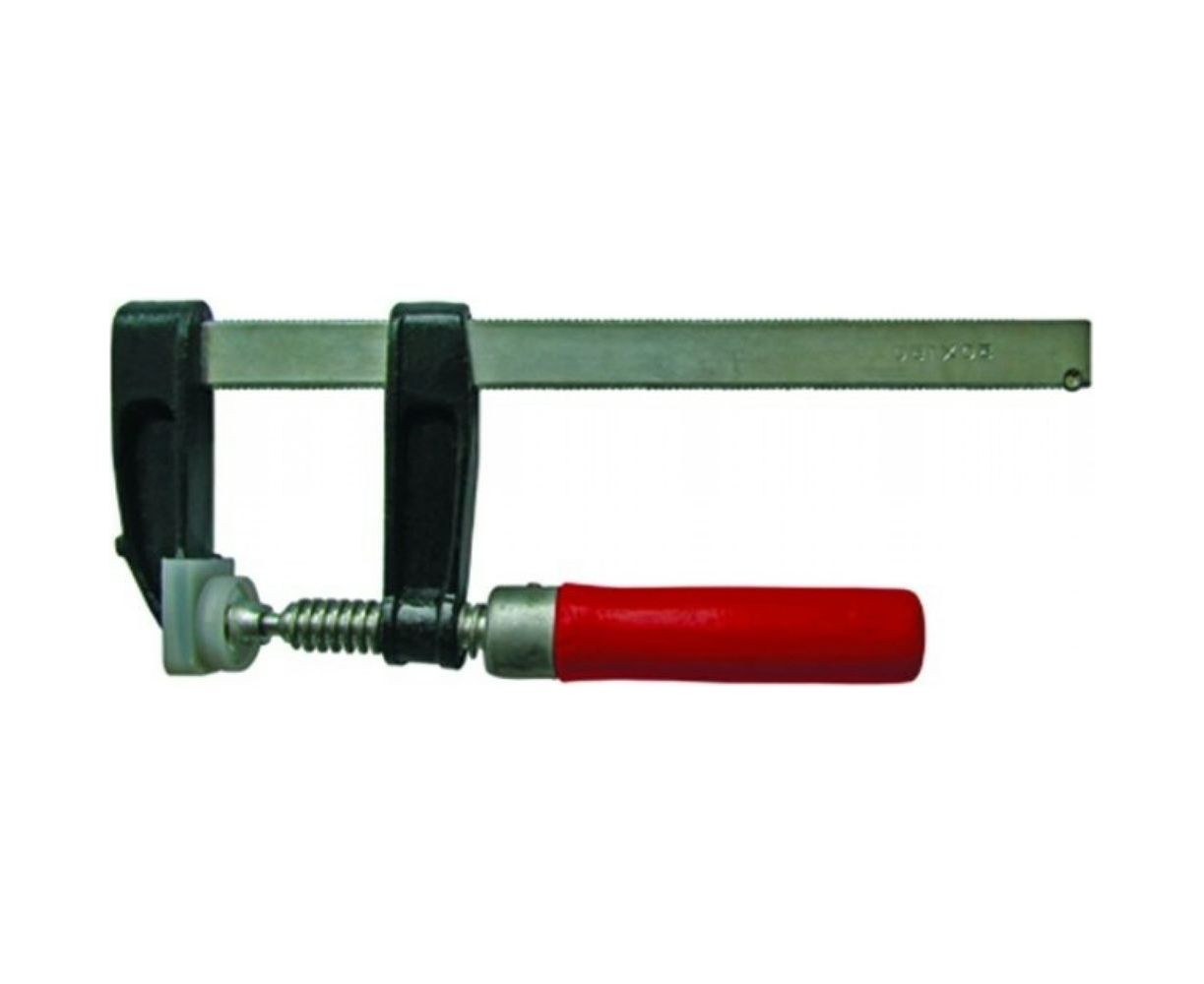 F-образная струбцина 80 х 300 мм РемоКолор 44-0-308 удобна в использовании за счет деревянной рукоятки. Инструмент оснащен пластиковыми накладками на губки, что значительно снижает риск повреждения ЛКП на окрашенных деталях.