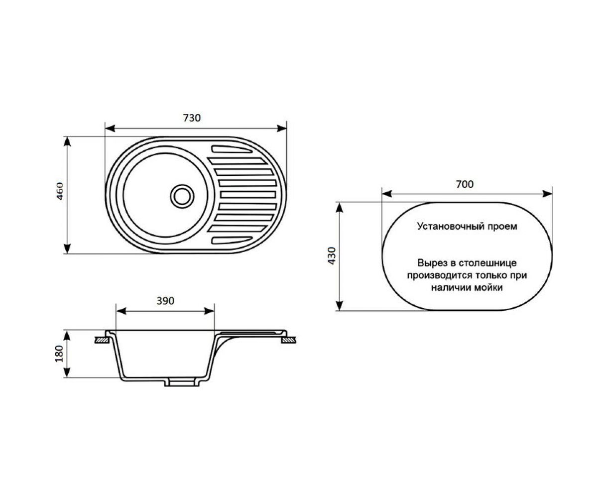 - Размер выреза в столешнице для установки мойки - 700х430 мм.