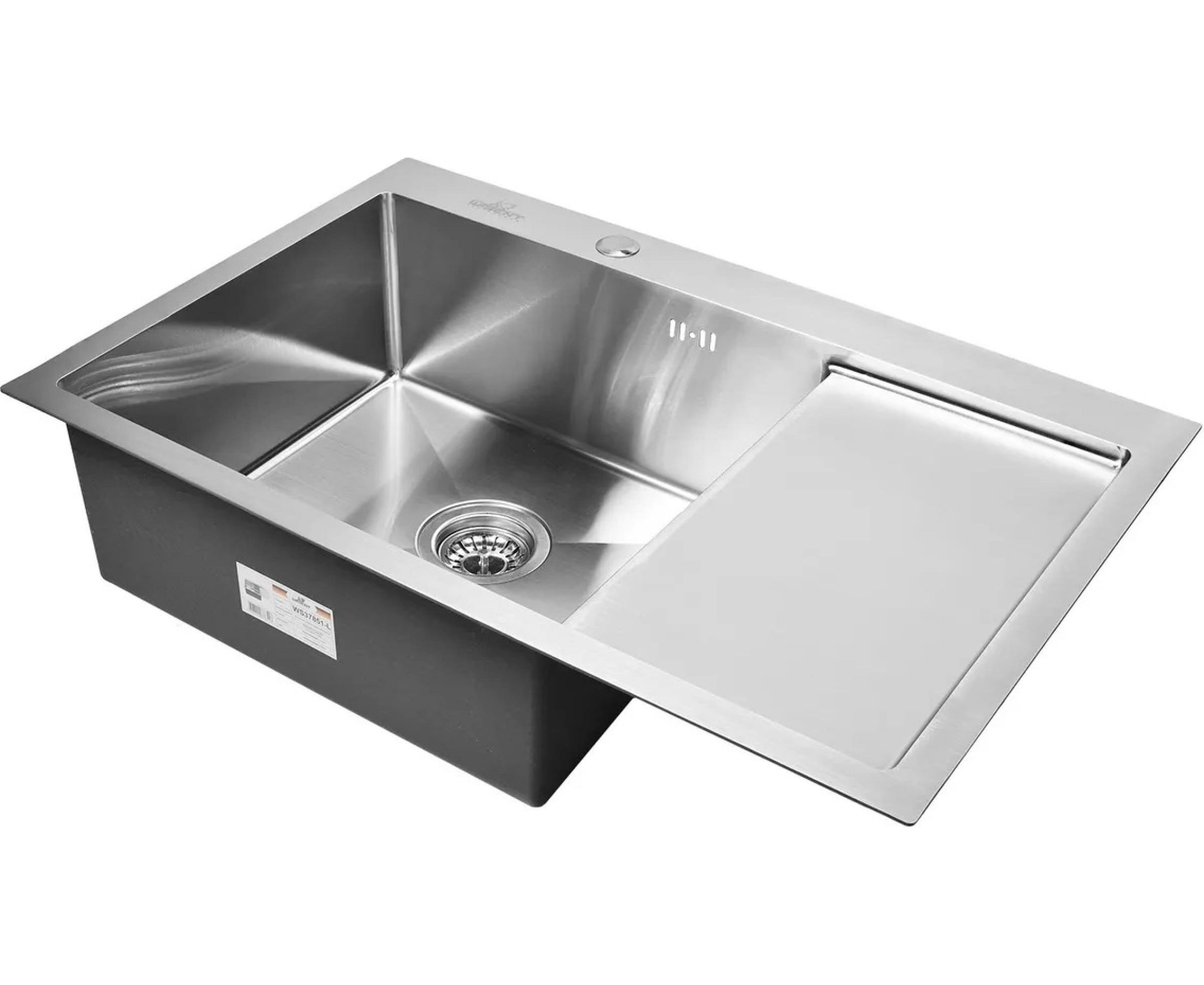 Кухонная мойка из нержавеющей стали WISENT 7851-L 78x51 см, с раздвижным коландером WS37851-L/W302644/WGER010 изготовлена из нержавеющей стали SUS304. Толщина листа чаши - 1 мм, толщина листа борта - 3 мм.