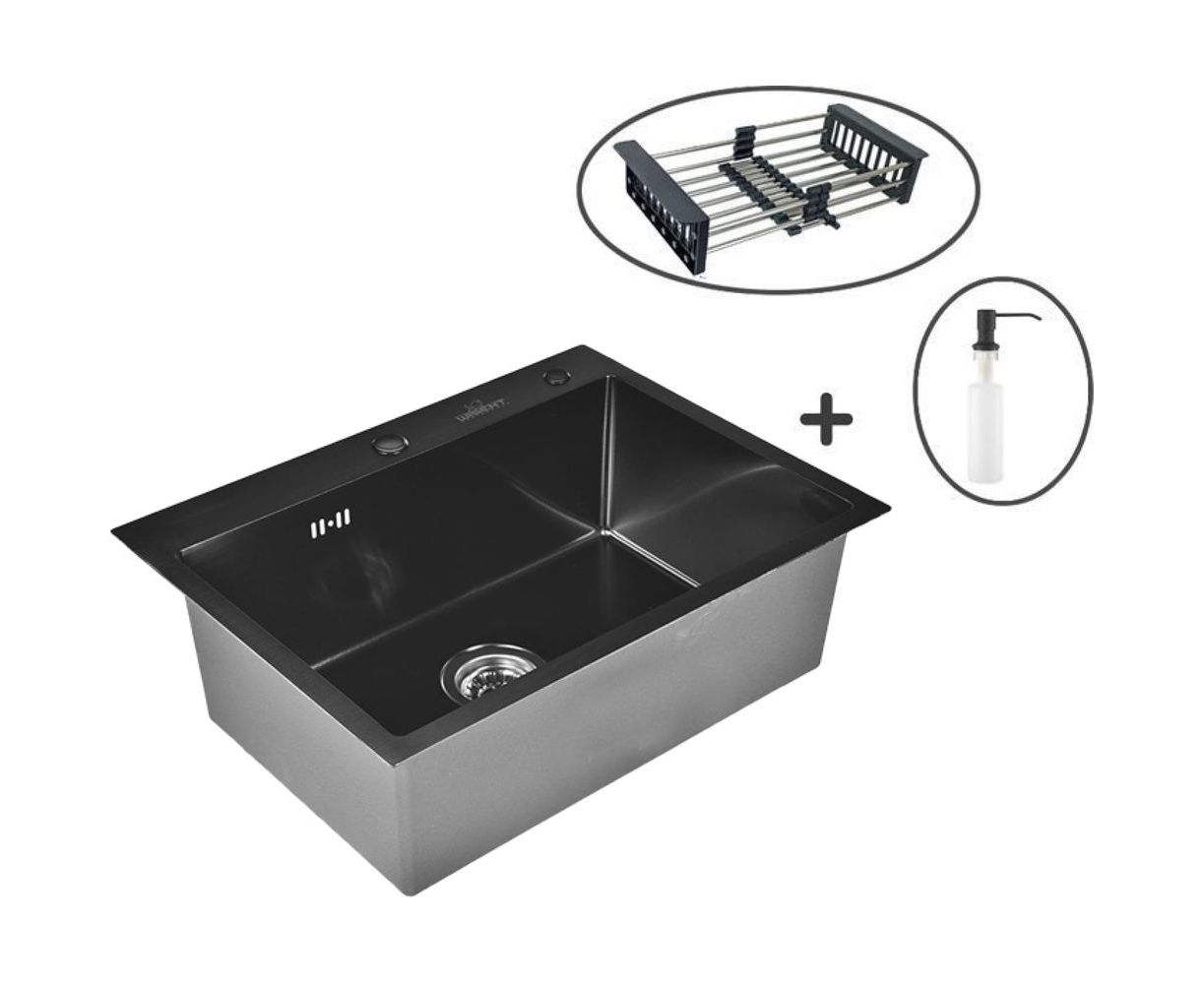 Кухонная мойка из нержавеющей стали WISENT ws36050b с pvd покрытием (60x50 см) с раздвижным коландером и дозатором WS36050B/W302644B/W405B/WGER010