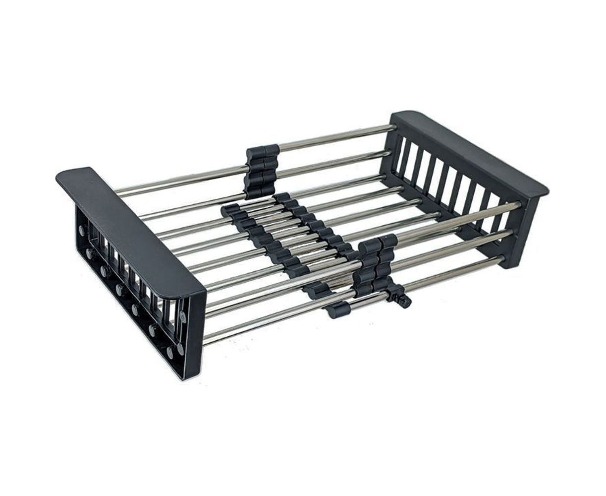 Универсальный телескопический коландер позволяет более рационально использовать пространство кухонной мойки. Он размещается в чаше и позволяет размораживать продукты или сушить посуду после мытья.