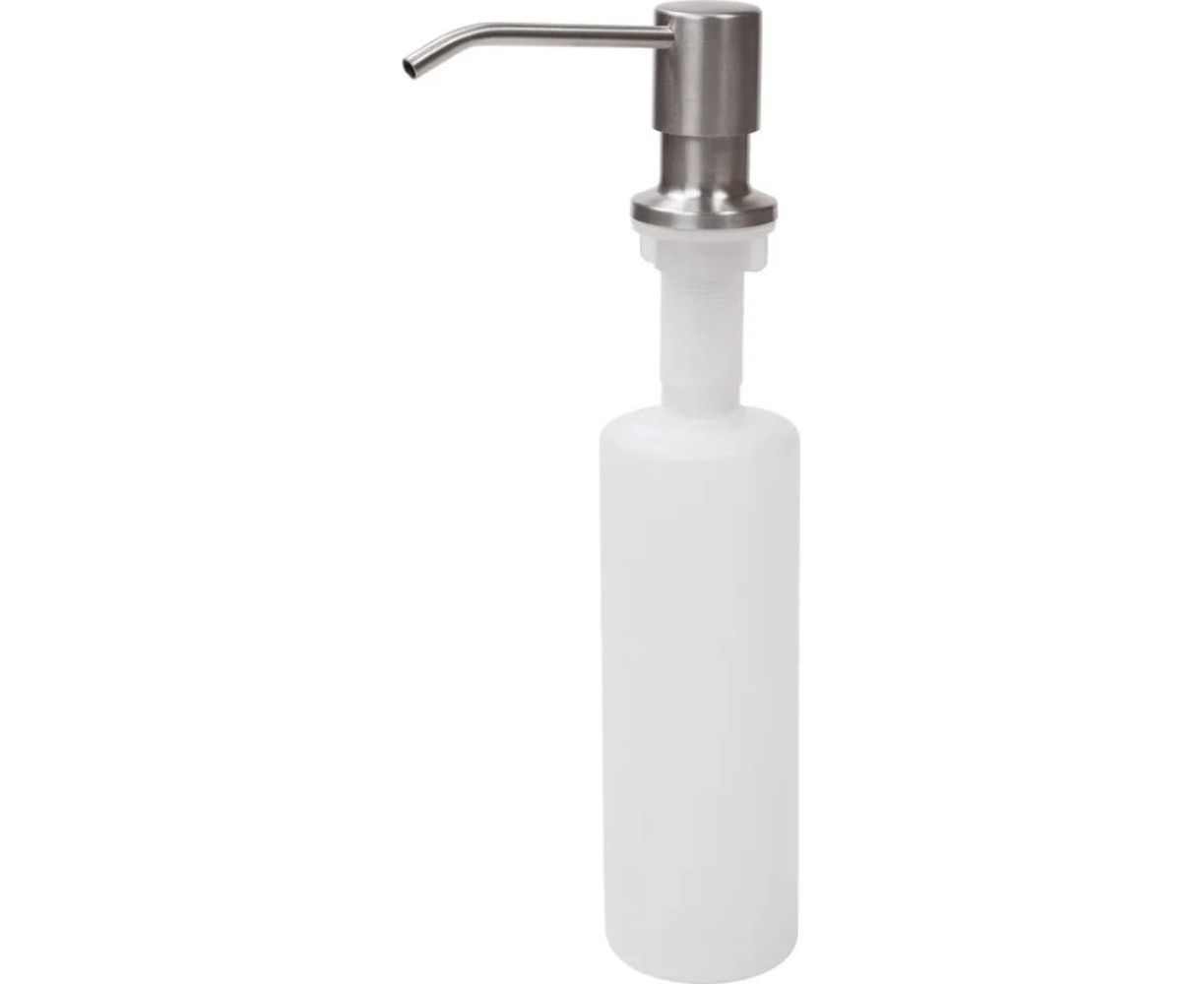 Врезной дозатор для жидкого мыла или средства для мытья посуды поможет освободить место на кухне.