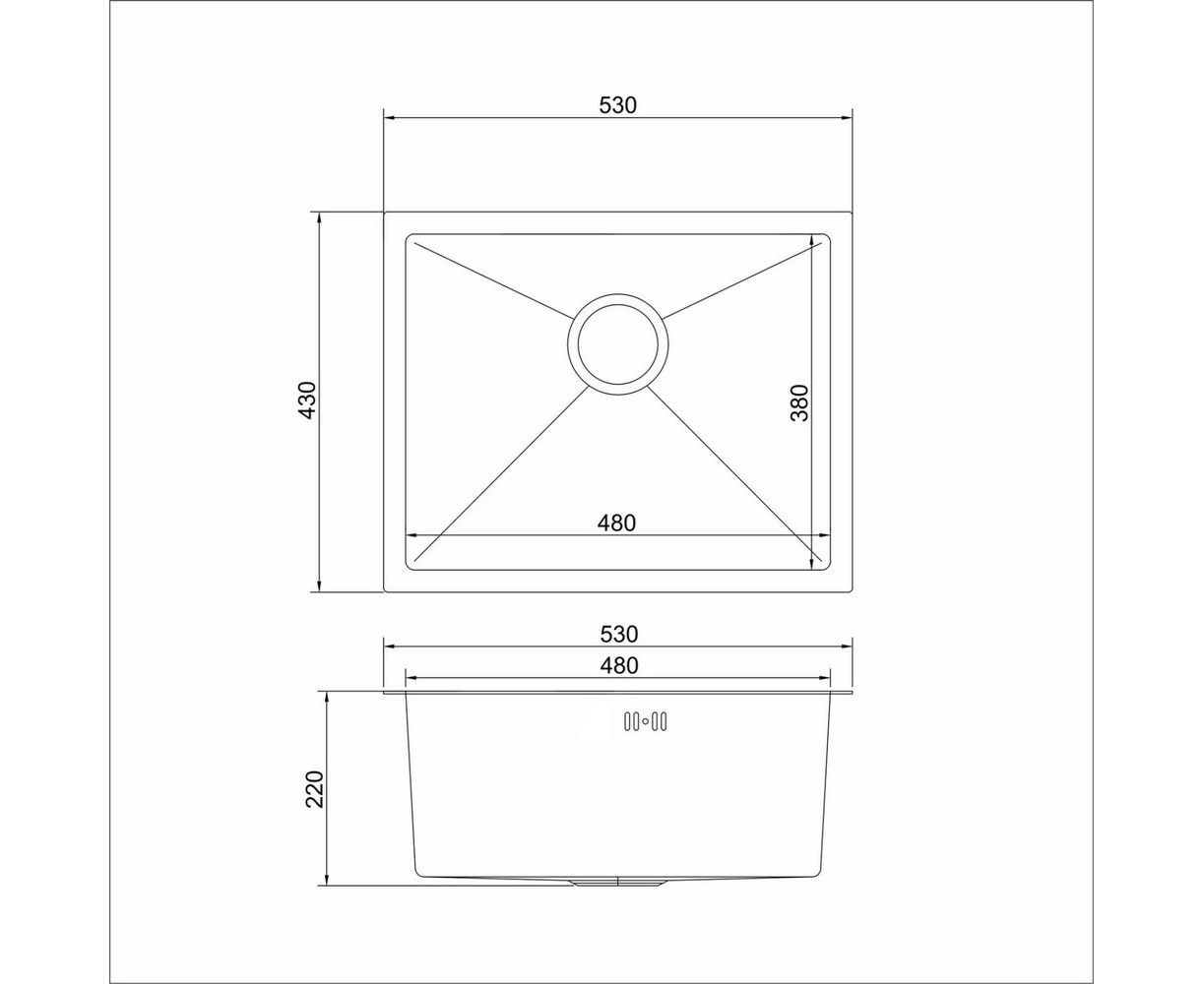 Подстольная мойка MIXLINE PRO 53x43, 3 мм, выпуск 3 1/2, 22 см, с сифоном, сатин 547231 дополнительные характеристики: