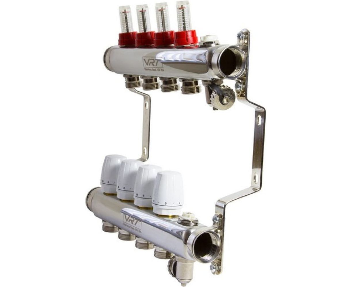 Коллекторная группа VRT 1""х3/4"", евроконус, 4 выхода, c расходомерами 530143