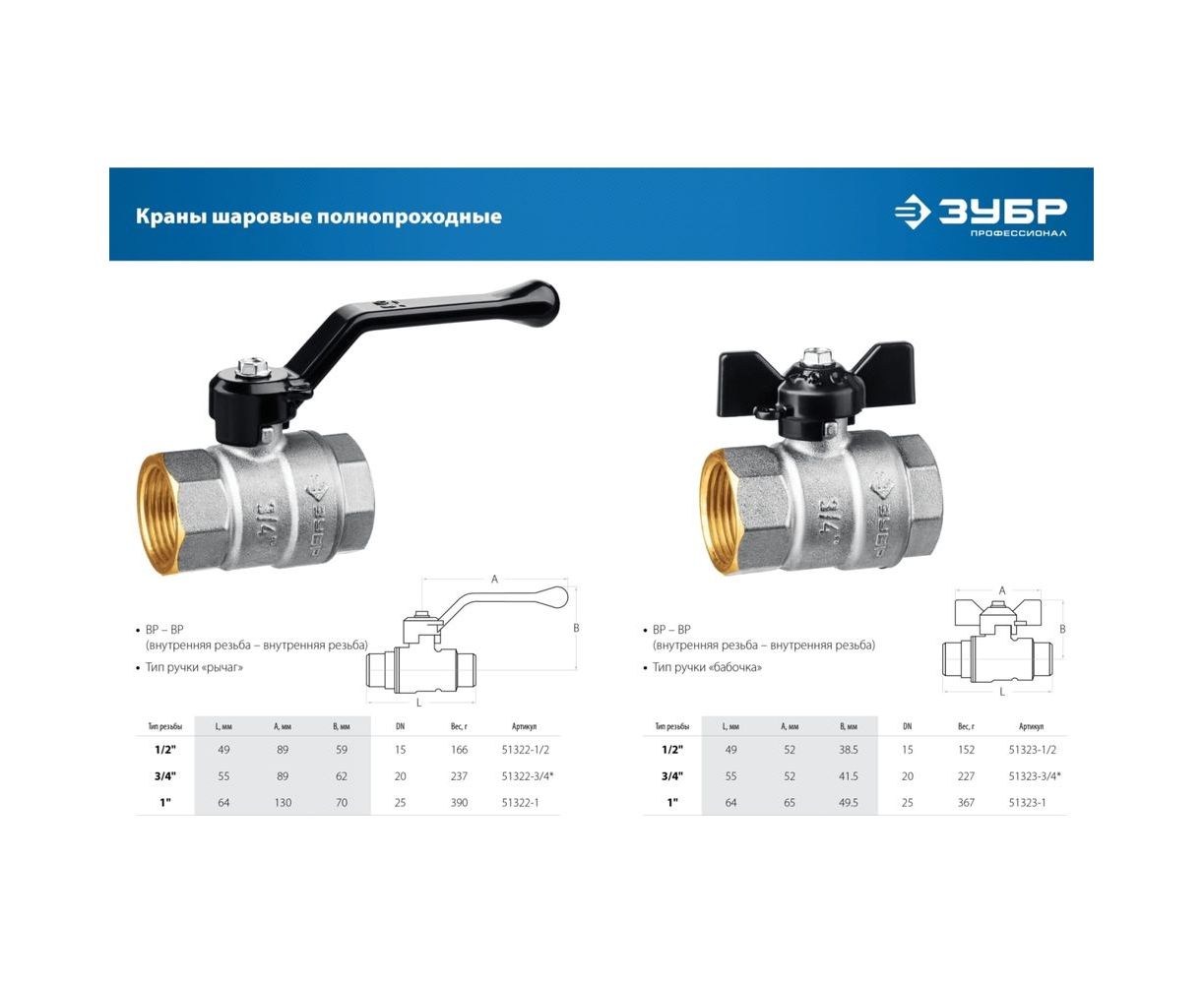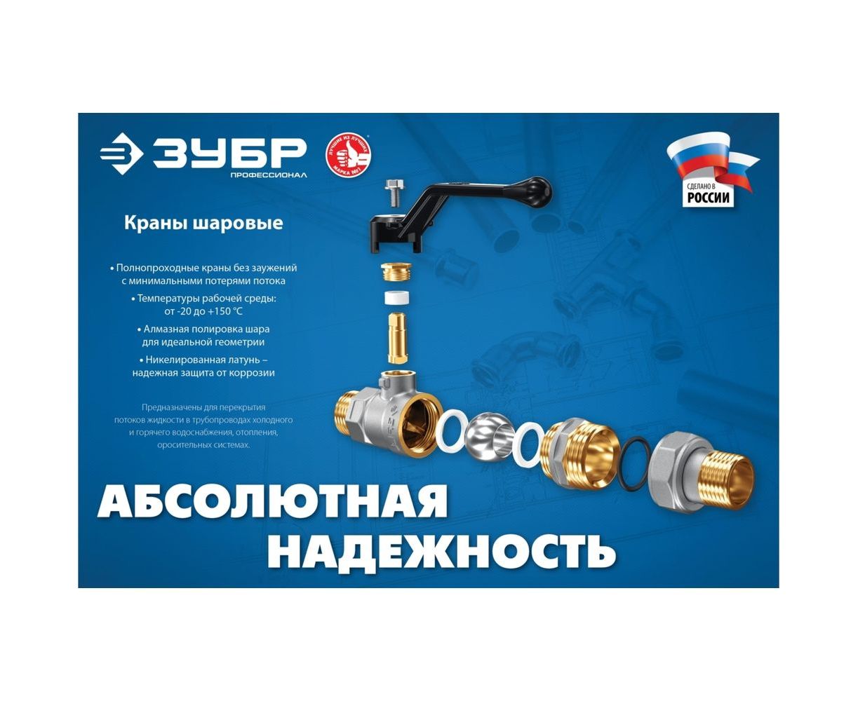 Шаровой кран ЗУБР полнопроходной ""мама-мама"", 3/4"" 51323-3/4