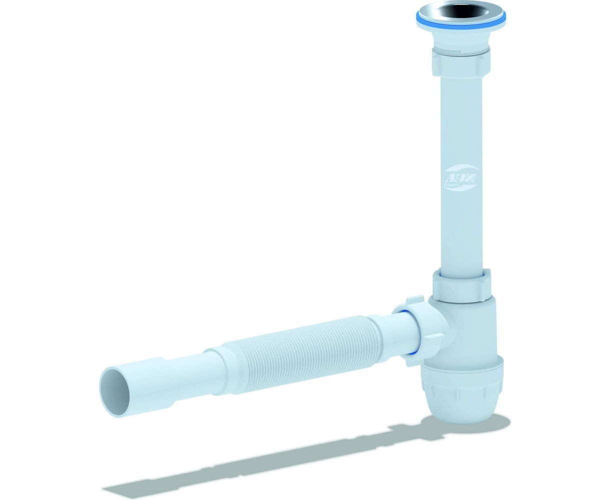 Сифон для умывальника АНИ Пласт бутылочный 1 1/4 дюйма x 40 мм, гофрированный, 40х40/50 мм, нержавеющая сетка C1015 025-0131