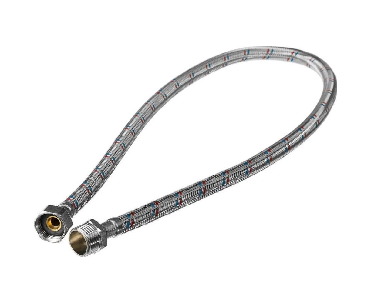 Гибкая подводка для воды сталь 100 см 1/2, гайка-штуцер предназначена для подключения отдельного сантехнического оборудования к основной системе водоснабжения.