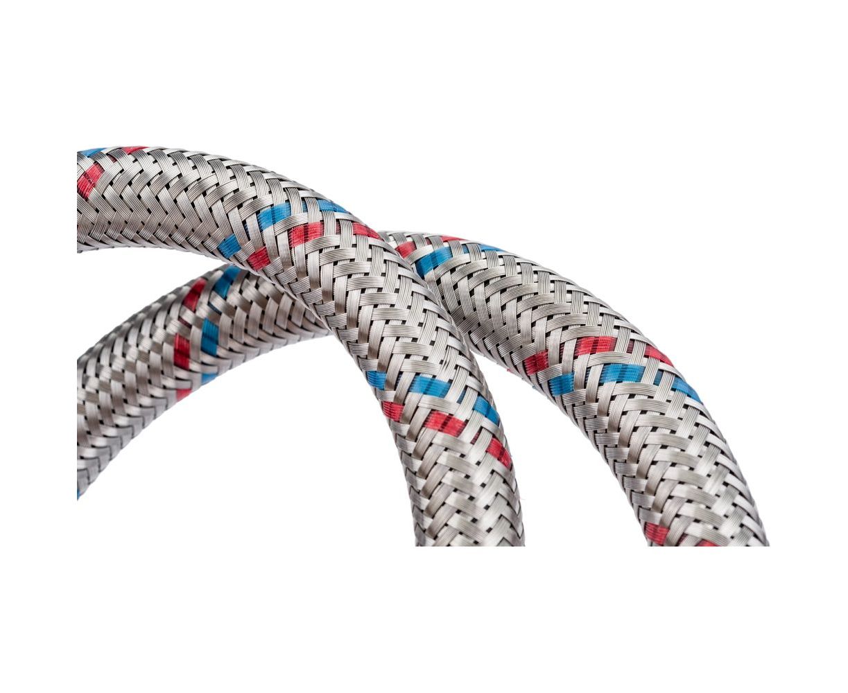 Изготовлена из качественных материалов, за счет чего отличается продолжительным сроком службы. Материал накидной гайки - нержавеющая сталь AISI 201, оплетка изготовлена из нержавеющей стали AISI 301, рукава - резина EPDM, оплетена нержавеющей проволокой AISI 301. Оснащена соединениями с внутренней и внешней резьбой.