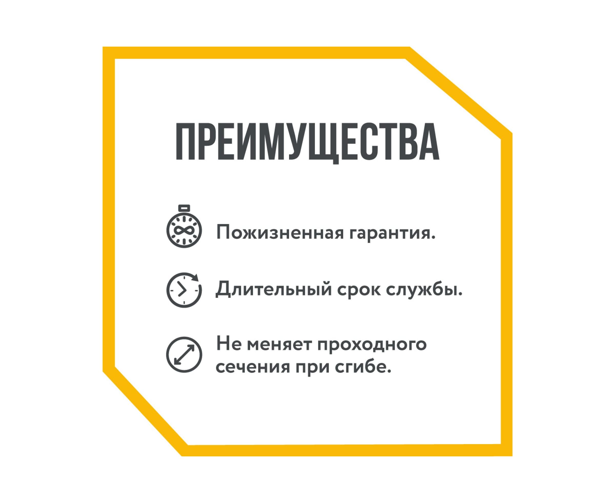 Гибкая подводка из гофрированных труб гарантируют герметичное соединение с высокой надежностью и длительным сроком службы (пожизненная гарантия!).