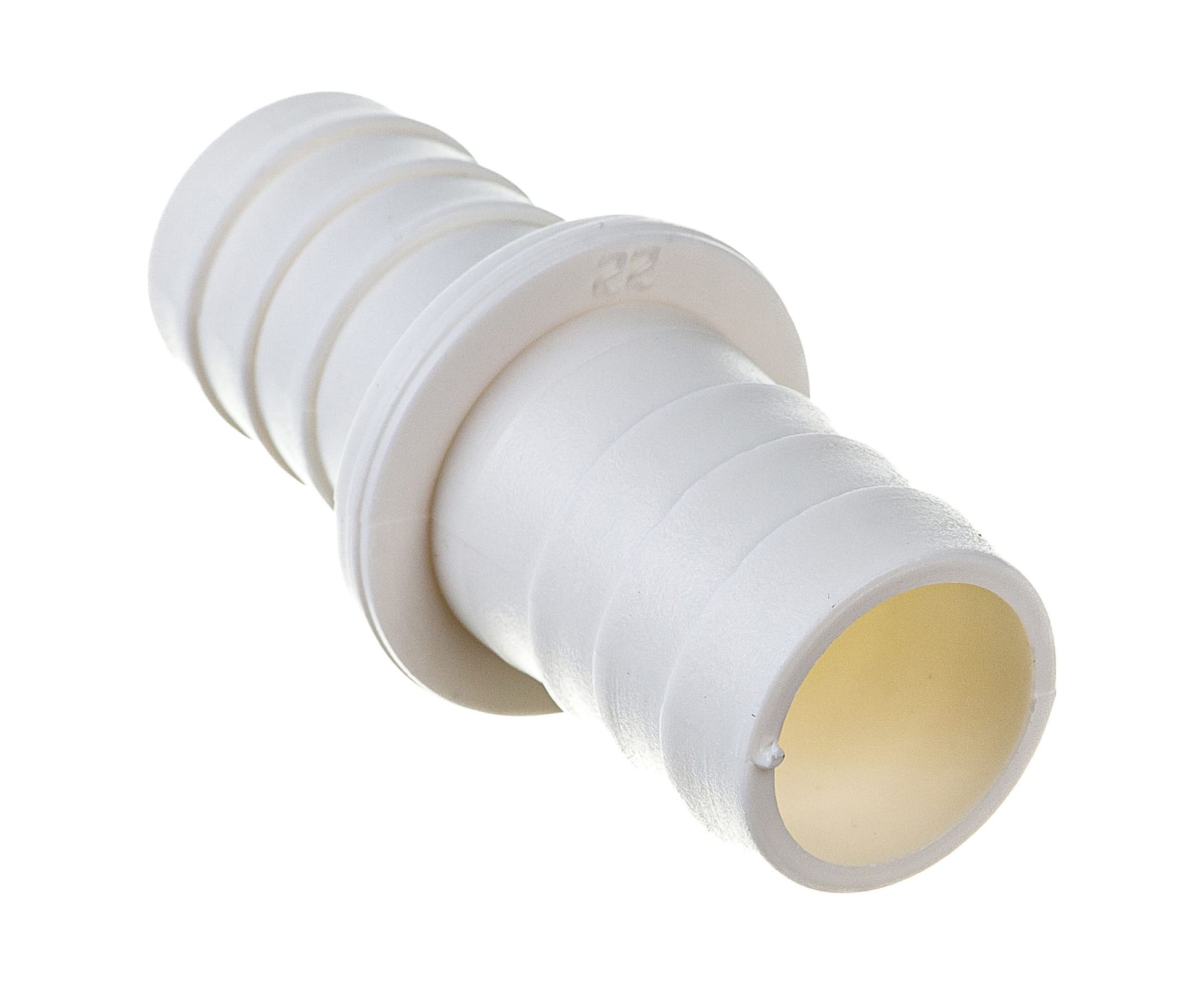 Универсальный переходник для шланга СУПРИМПЛАСТ D22x22 4W_2222_02H предназначен для удлинения или соединения сливных шлангов стиральной или посудомоечной машины.