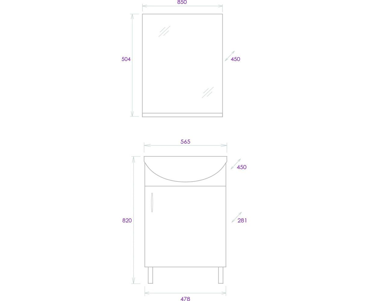 Тумба и зеркало выполнены из ЛДСП, устойчивой к механическим воздействиям, перепадам температур и высокой влажности.