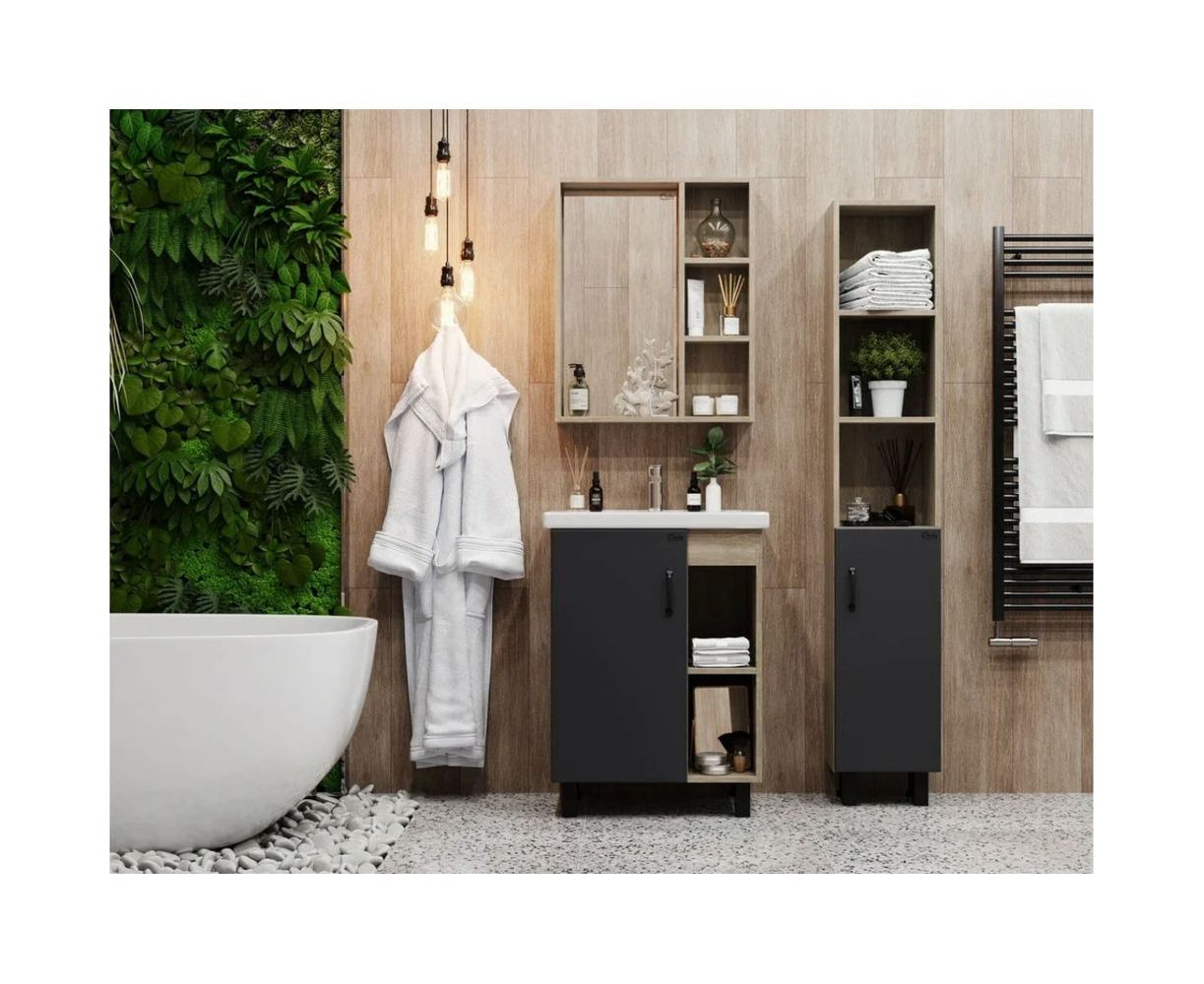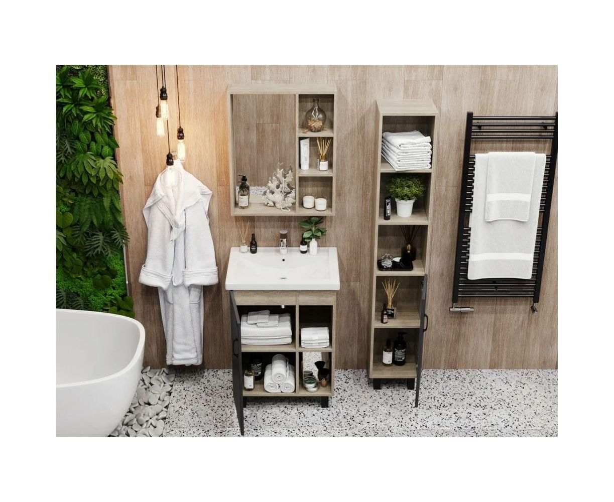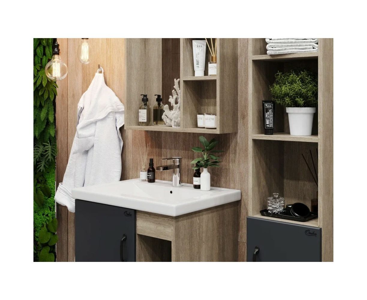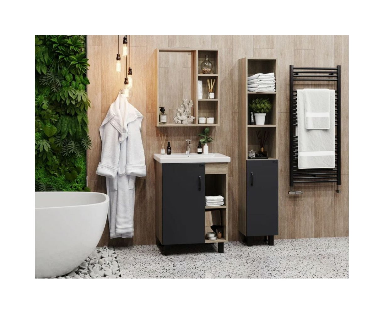 Пенал Onika ТИМБЕР серый матовый/дуб сонома 30.01 403067 выполнен в оригинальном дизайне, который станет яркой нотой интерьера ванной комнаты.