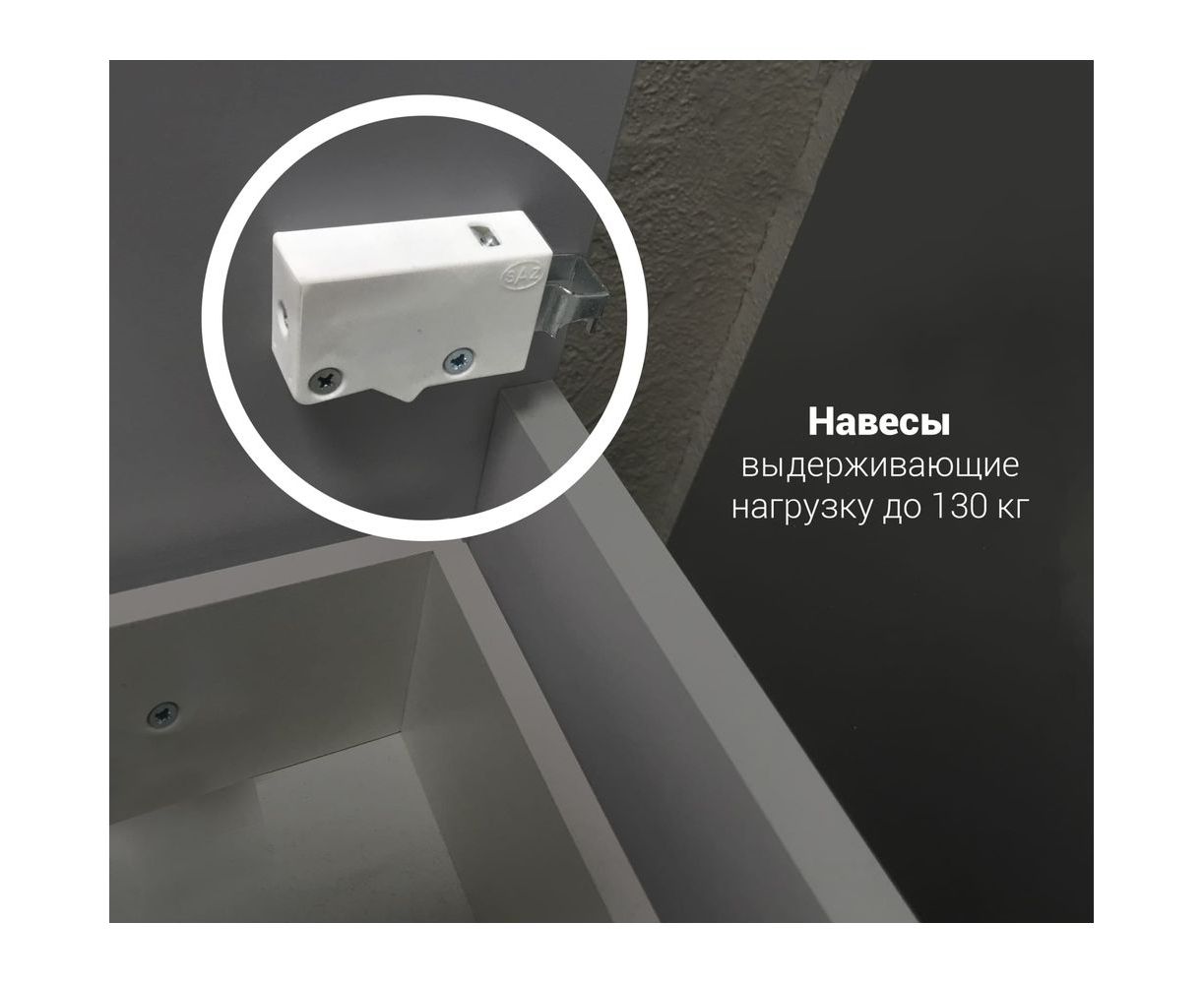 Корпус и фасад из МДФ от бренда Egger покрыты плёнкой ПВХ для дополнительной защиты от влаги и внешних повреждений. Фурнитура Hettich обеспечивает мягкое, плавное и бесшумное открытие и закрытие ящиков.