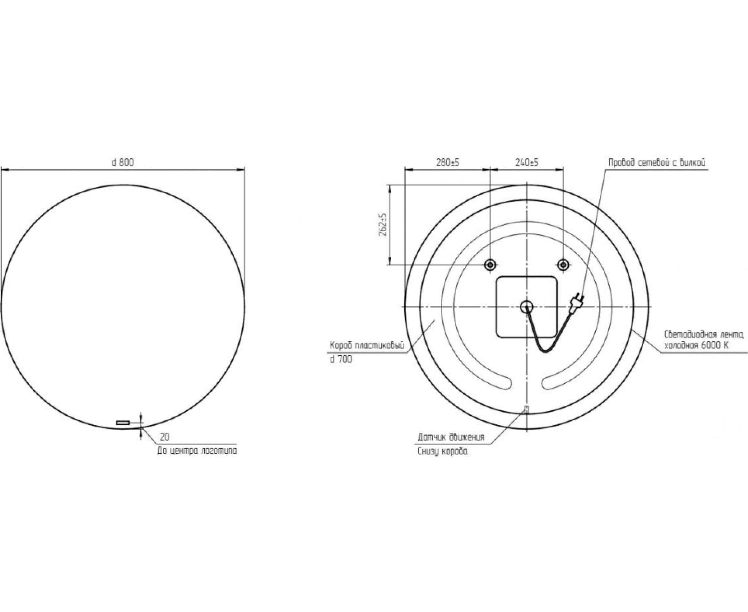 Зеркало Cersanit ECLIPSE smart 80x80 с подсветкой, круглое 64143 с ореольной подсветкой, которая включается по взмаху руки, создаёт эффект парения зеркала и сказочную атмосферу в ванной комнате.