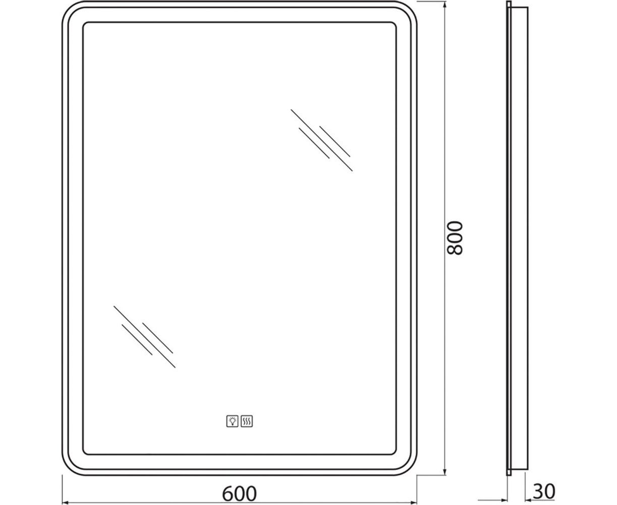 - На зеркале установлен двойной сенсор, блок увеличенной мощности, с помощью которого производиться отдельное включение подсветки и подогрева зеркала.
