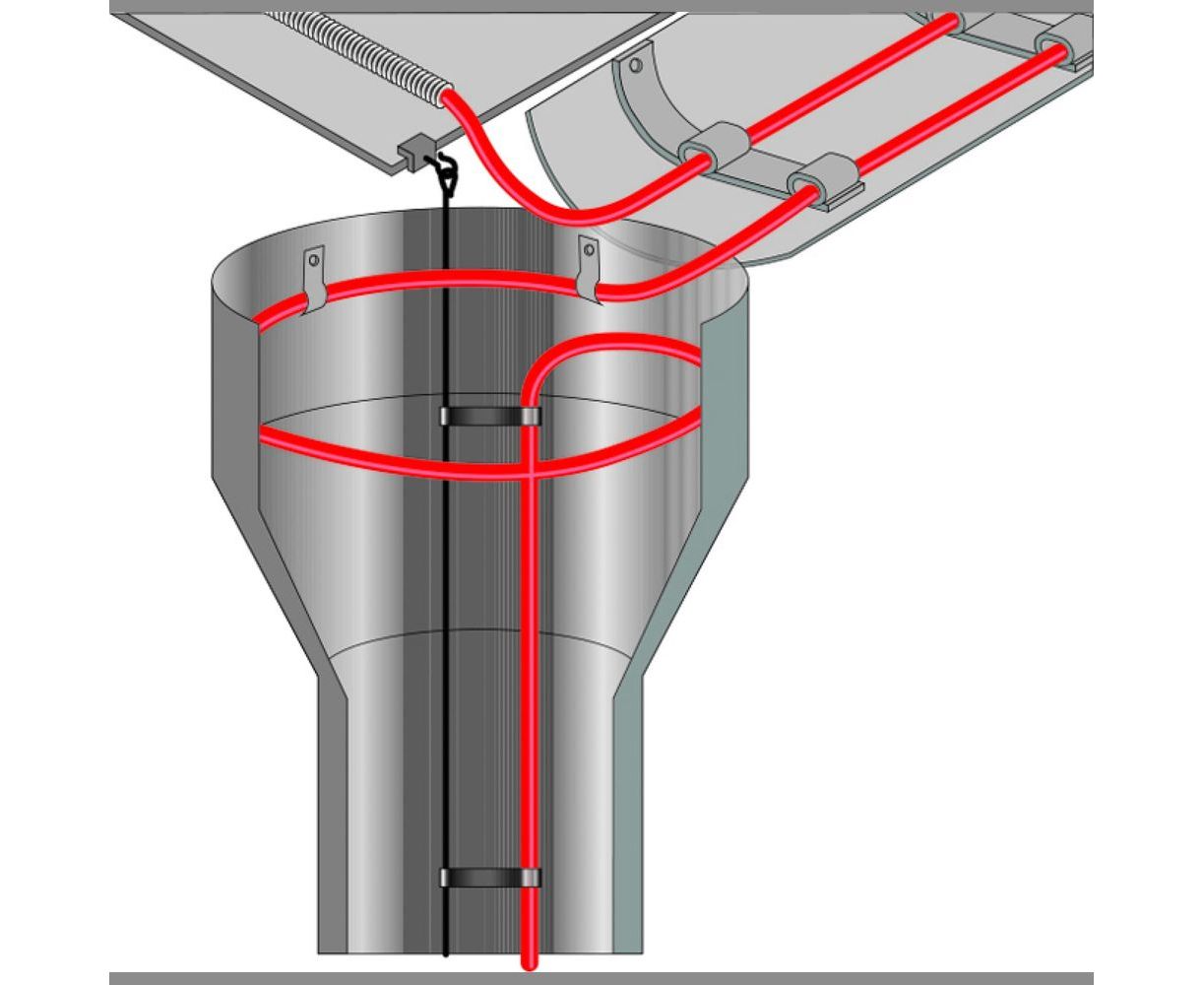 При монтаже на поверхности трубы необходимо контролировать минимальный радиус изгиба - 40 мм.