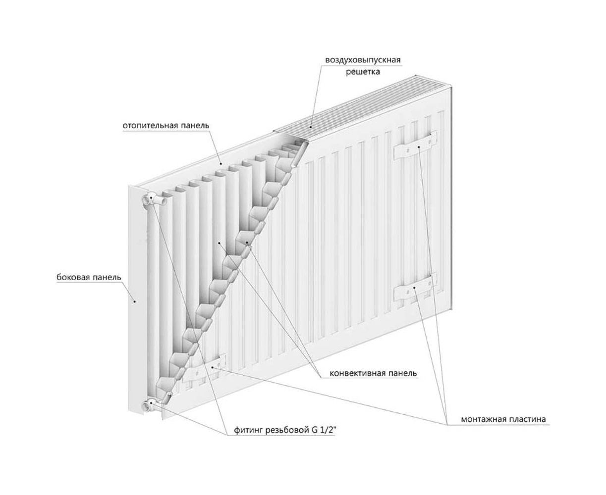 Стальной панельный радиатор ROMMER Ventil нижнее подключение, 22/500/800 RRS-2020-225080
