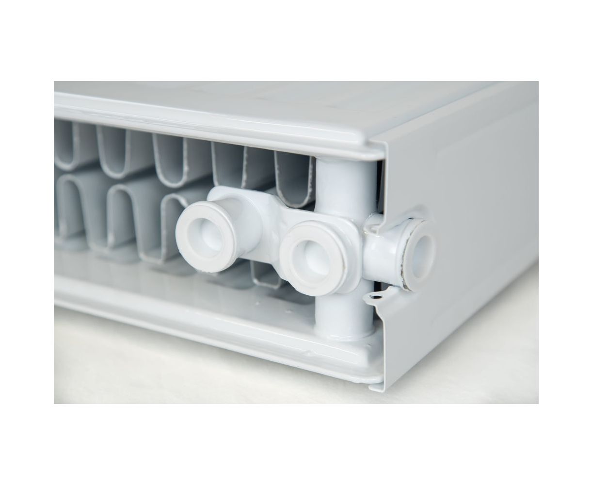 Стальные панельные радиаторы AXIS состоят из тепловых панелей с дополнительными конвективными поверхностями. Толщина стального листа увеличена для поставок в Россию и составляет 1,2 мм (в Европу поставляются радиаторы с толщиной листа 1,1 мм). Увеличенная толщина стального листа позволила достичь рекордного для панельного радиатора давления на разрыв в 20 атм.