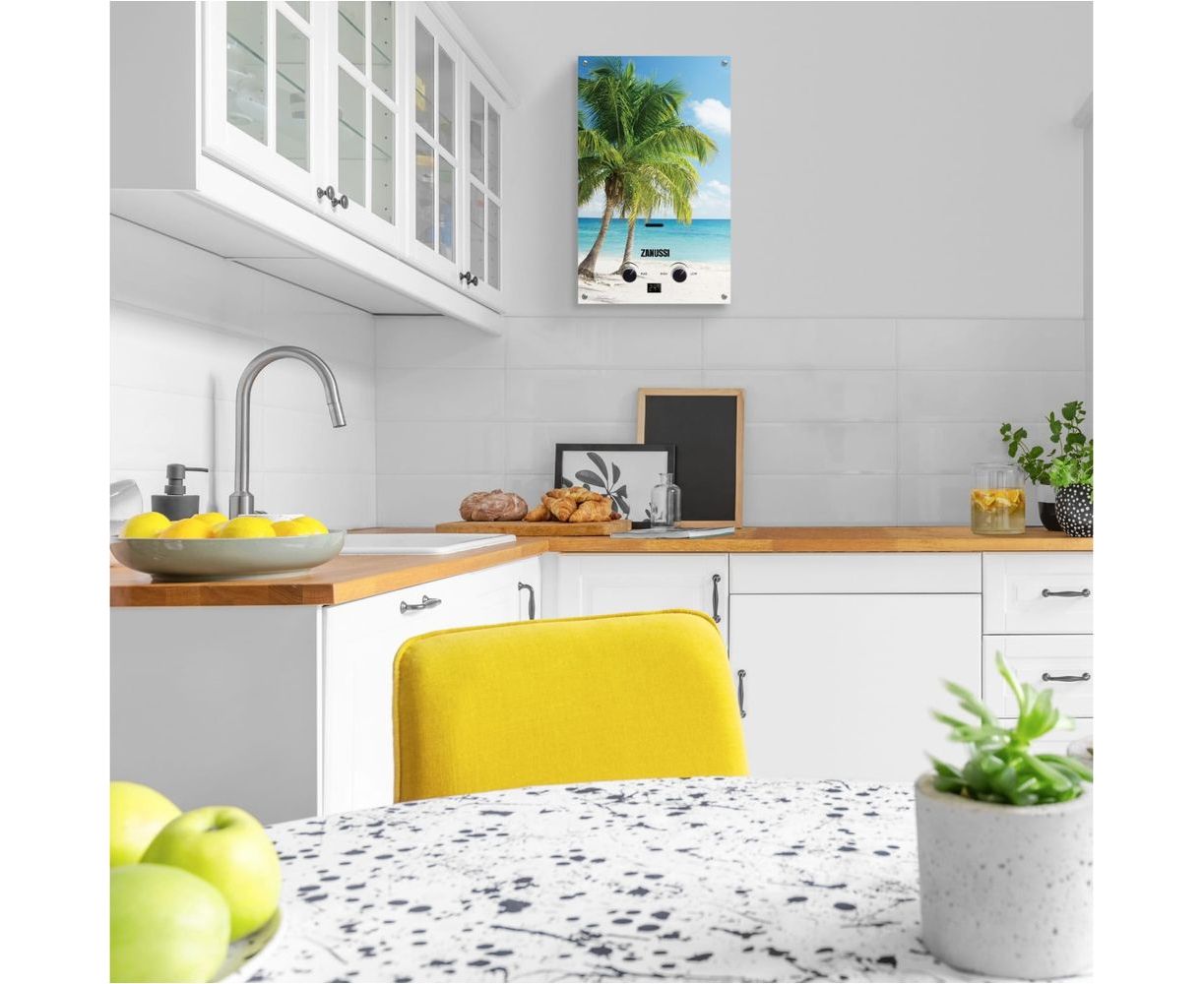 Газовые колонки Zanussi GWH 10 Fonte Glass Paradiso НС-1077262 - это дизайн серия приборов, лицевая сторона выполнена из стеклянной панели с различными принтами. На выбор 6 вариантов панелей, это даёт возможность органично вписать прибор в любой интерьер.